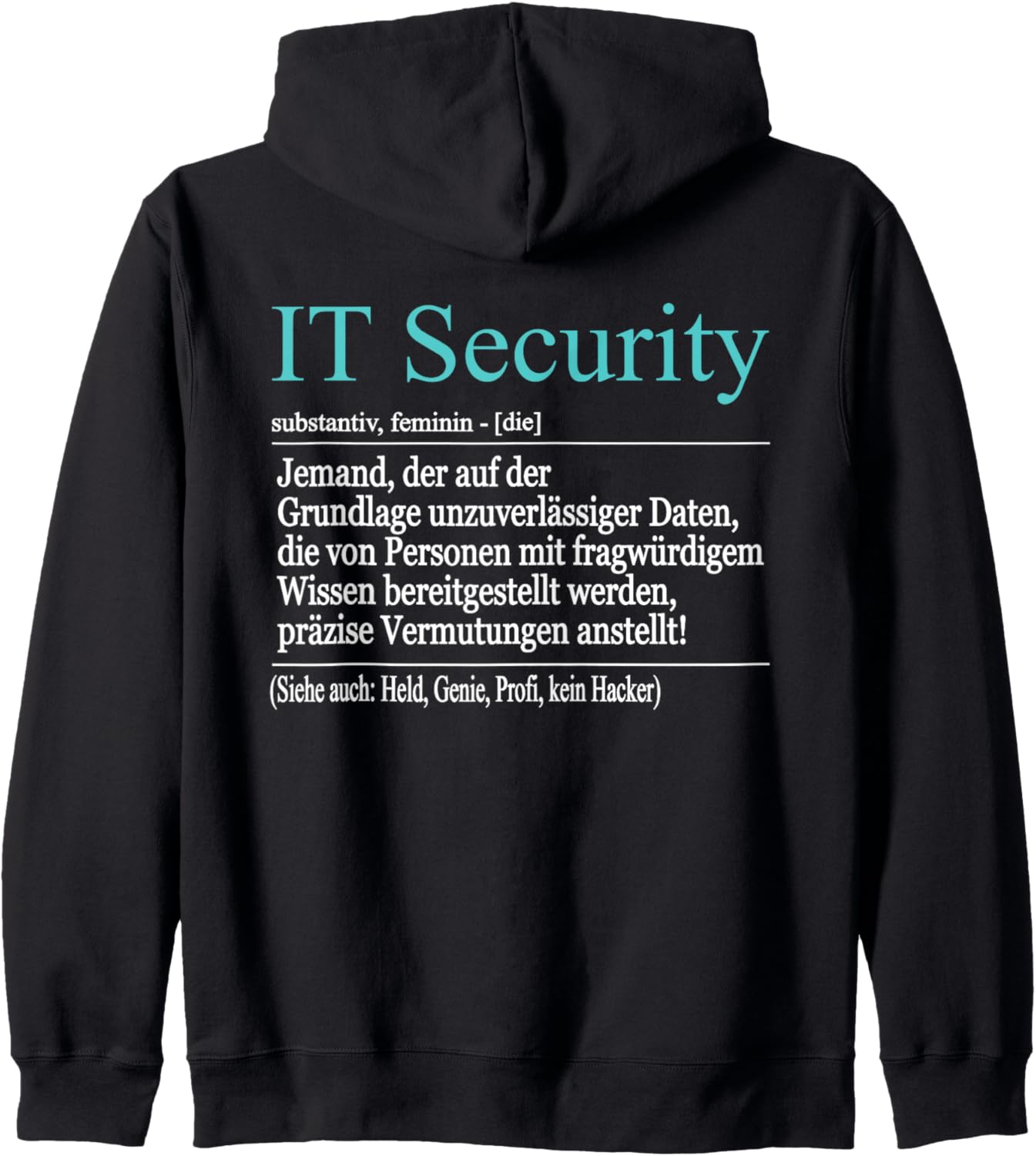 PRODUKTBESCHREIBUNGEN IT Security Definition! Ein Fachinformatiker Design für den Computer Experte, IT Nerd& Administrator der seinen Job liebt und Humor versteht. Für alle Computerexperten& IT Securitys, dass perfekte Fachinformatiker T-Shirt und Informatiker Geschenk lustig! Günstiges Geburtstagsgeschenk Informatiker, die Programmieren& Informatik können! Für Fachinformatiker, Administrator, Systemadministrator, Software Entwickler oder ähnliches sind oder eine Fachinformatiker Ausbildung absolvieren: IT Security Definition! Dieses Computer Experte Informatiker Nerd Definition IT Security Produkt ist von Fachinformatiker Programmierer Systemadministrator erstellt.
