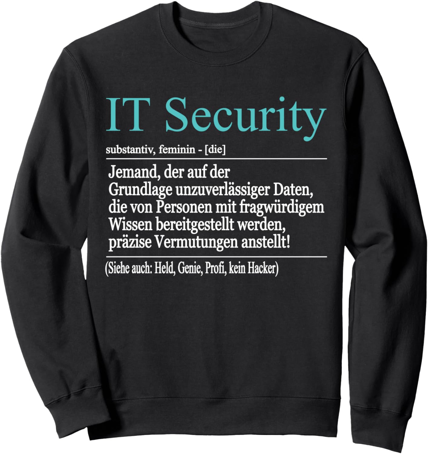 PRODUKTBESCHREIBUNGEN IT Security Definition! Ein Fachinformatiker Design für den Computer Experte, IT Nerd& Administrator der seinen Job liebt und Humor versteht. Für alle Computerexperten& IT Securitys, dass perfekte Fachinformatiker T-Shirt und Informatiker Geschenk lustig! Günstiges Geburtstagsgeschenk Informatiker, die Programmieren& Informatik können! Für Fachinformatiker, Administrator, Systemadministrator, Software Entwickler oder ähnliches sind oder eine Fachinformatiker Ausbildung absolvieren: IT Security Definition! Dieses Computer Experte Informatiker Nerd Definition IT Security Produkt ist von Fachinformatiker Programmierer Systemadministrator erstellt.