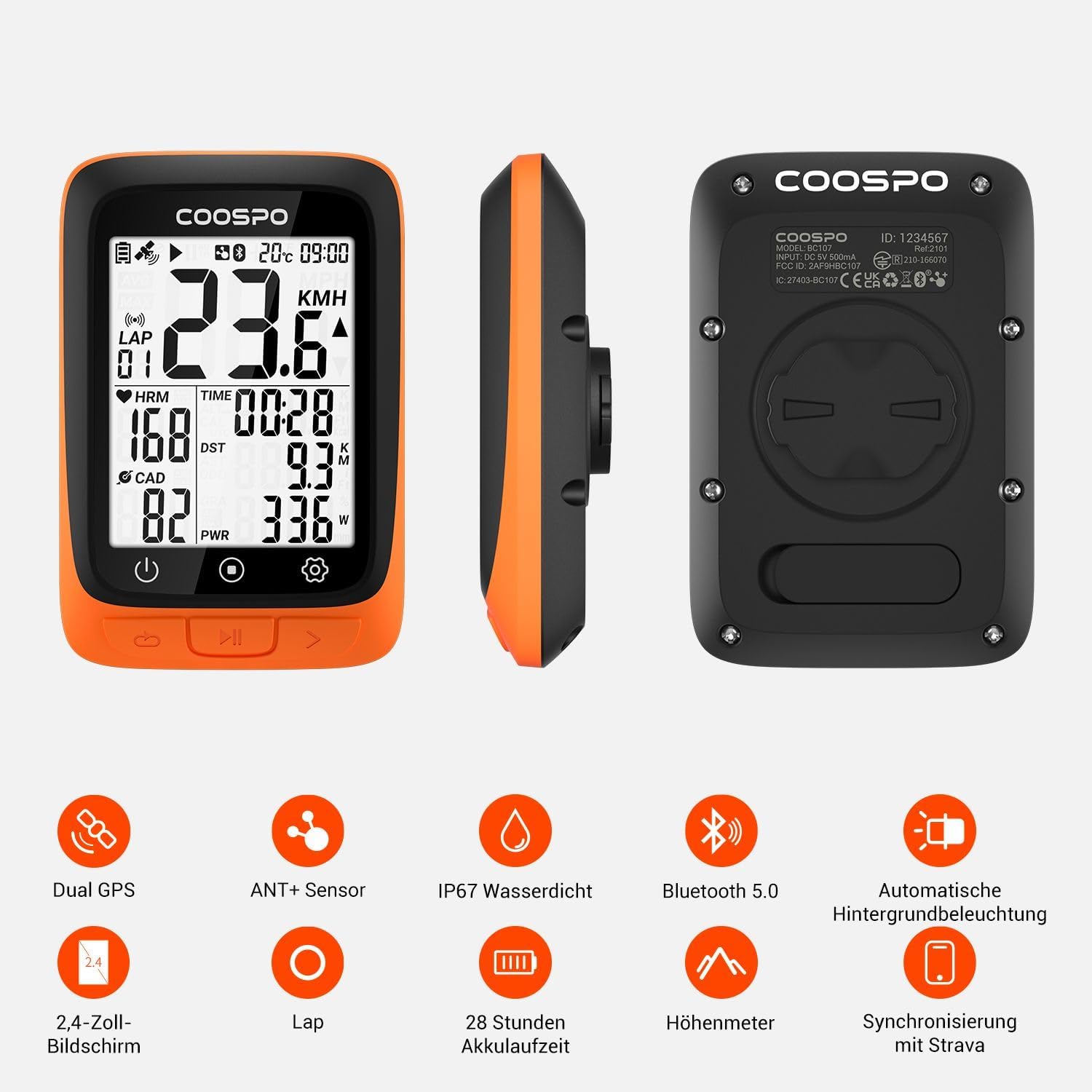 - 🔵CoospoRide APP Unterstützung - Mit der CoospoRide App können Sie BC107 einfach auf Ihrem Telefon einstellen, wie z.B.: schnelles Verbinden und einfaches Einstellen des Fahrradcomputers, Laden der GPS-Track-Routenkarte, Aufzeichnen und Analysieren von Radaktivitätsaufzeichnungen, Aktualisieren der neuesten Firmware und so weiter.
