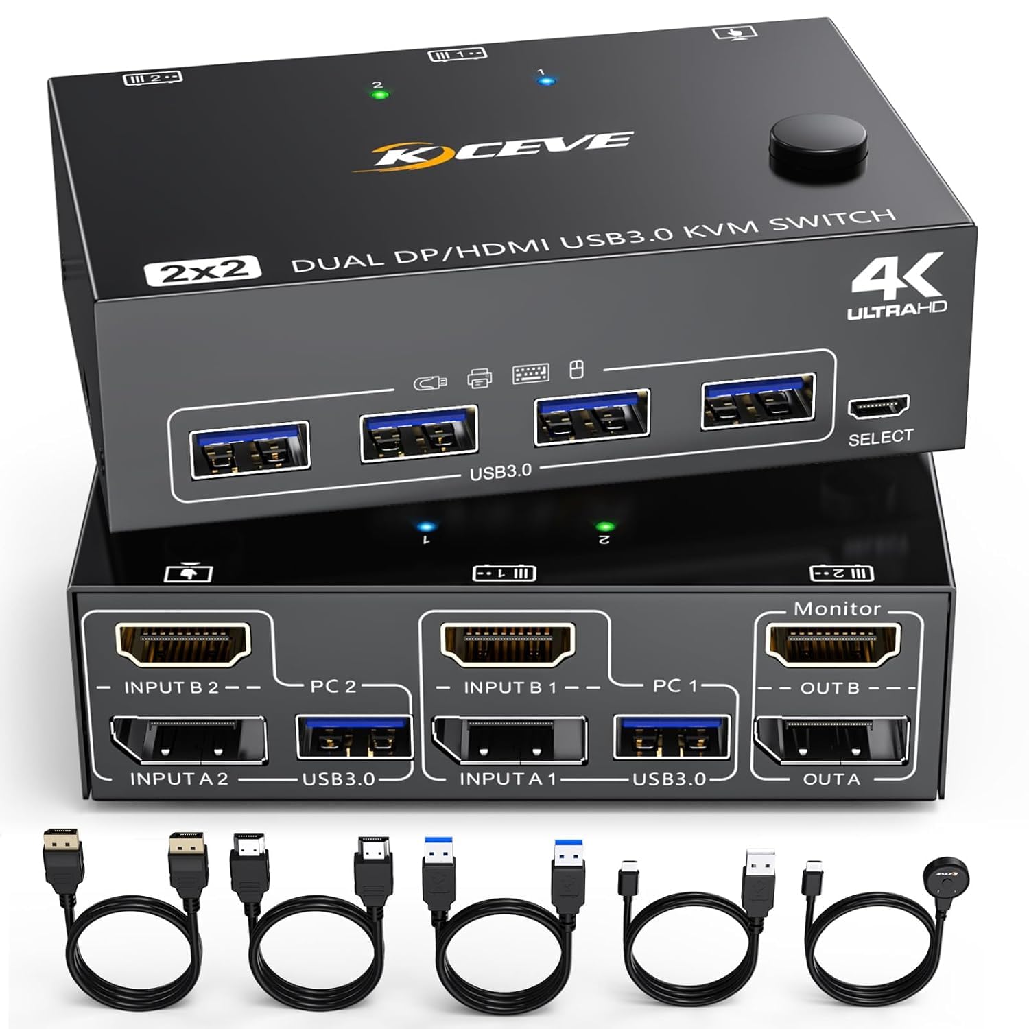 - 【Mit 4 USB 3.0 USB-Anschlüssen】 Dieser 2-in-2-Ausgang DP HDMI KVM USB 3.0-Switch mit 4 USB 3.0-Anschlüssen zum Teilen von Maus, Tastatur, USB-Druckern, Scannern usw. Die USB 3.0-Übertragung ist stabiler und schneller, wenn Sie nach einem
