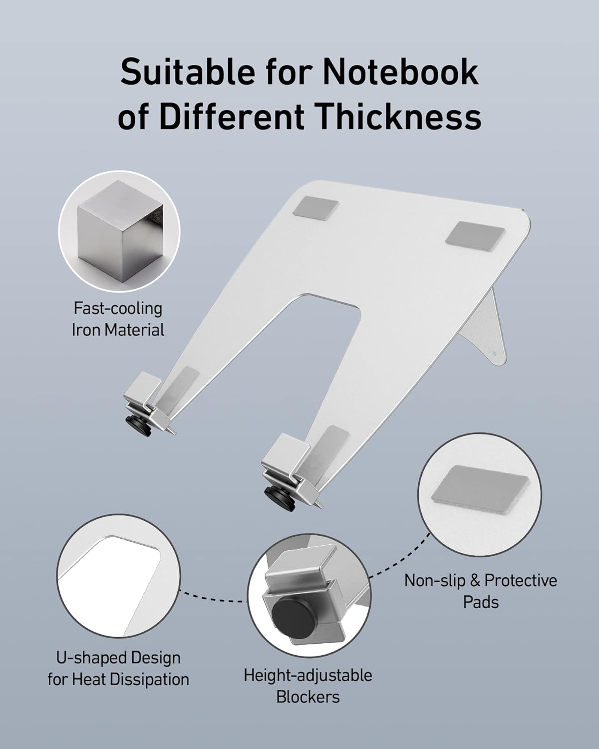 - L-förmiges Blech: Die untere Lippe hält das Gerät sicher an Ort und Stelle, sodass der Laptop nicht verrutscht und herunterfällt. Die Anti-Rutsch-Pads machen Ihren Laptop robuster und reduzieren Kratzer. (Hinweis: kein seitlicher Clip-Schutz)