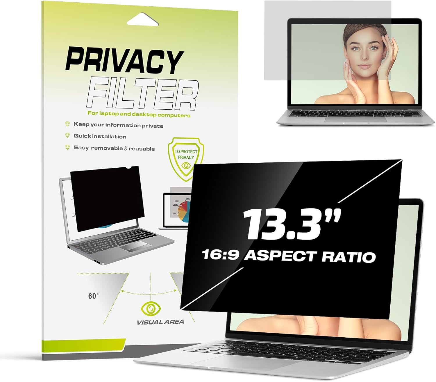 - Kompatibilität: Geeignet für alle Laptop-Displays mit einer Grösse von 13,3 Zoll und einem Seitenverhältnis von 16:9. Die Masse des Datenschutzfilters betragen: Breite: 294 mm / 11,56 Zoll, Höhe: 166 mm / 6,5 Zoll (ohne erhöhten Rahmen). Alle