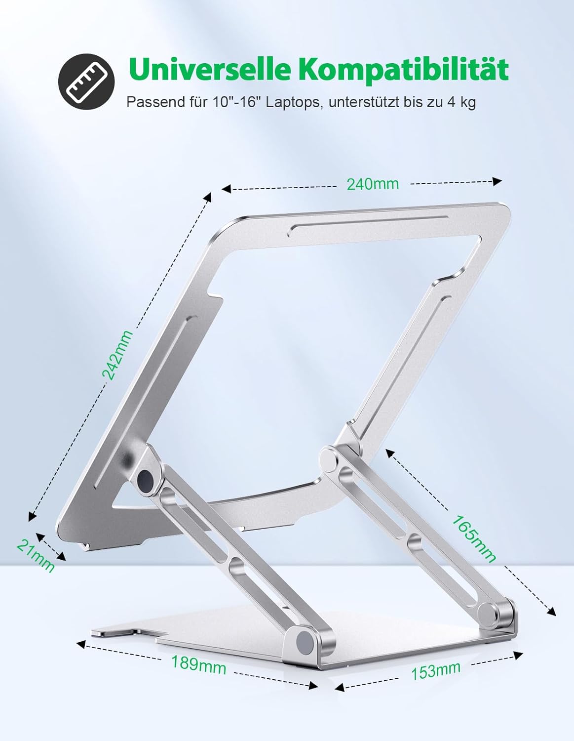 - 【Breite Kompatibilität】Der Laptopstand passt zu jedem Laptop von 10" bis 16", kompatibel mit MacBook/Macbook Pro/MacBook Air/ ThinkPad/Google und anderen. Es ist eine gute Wahl für Sie/Kollegen/Familie/Freunde als praktisches Geschenk.