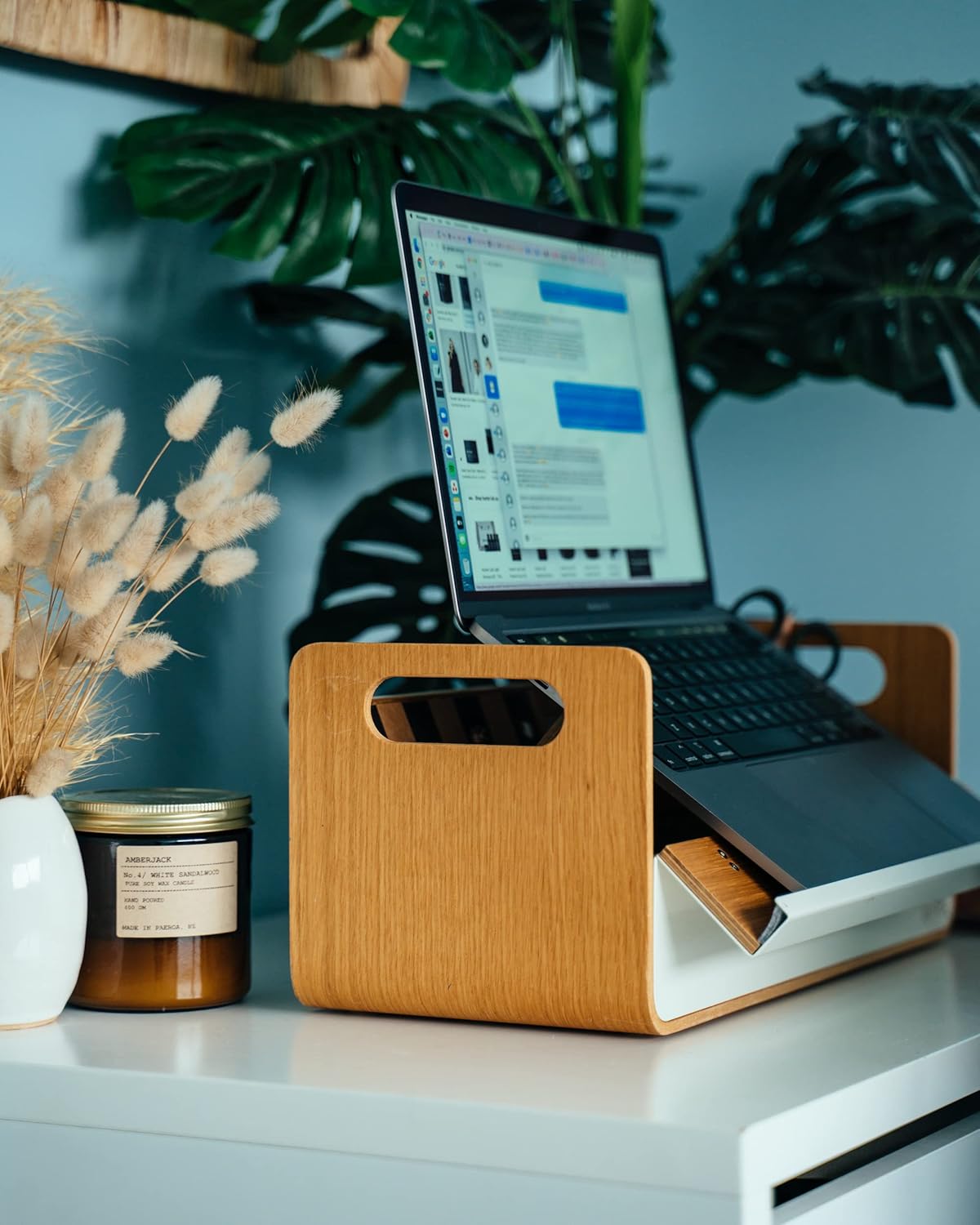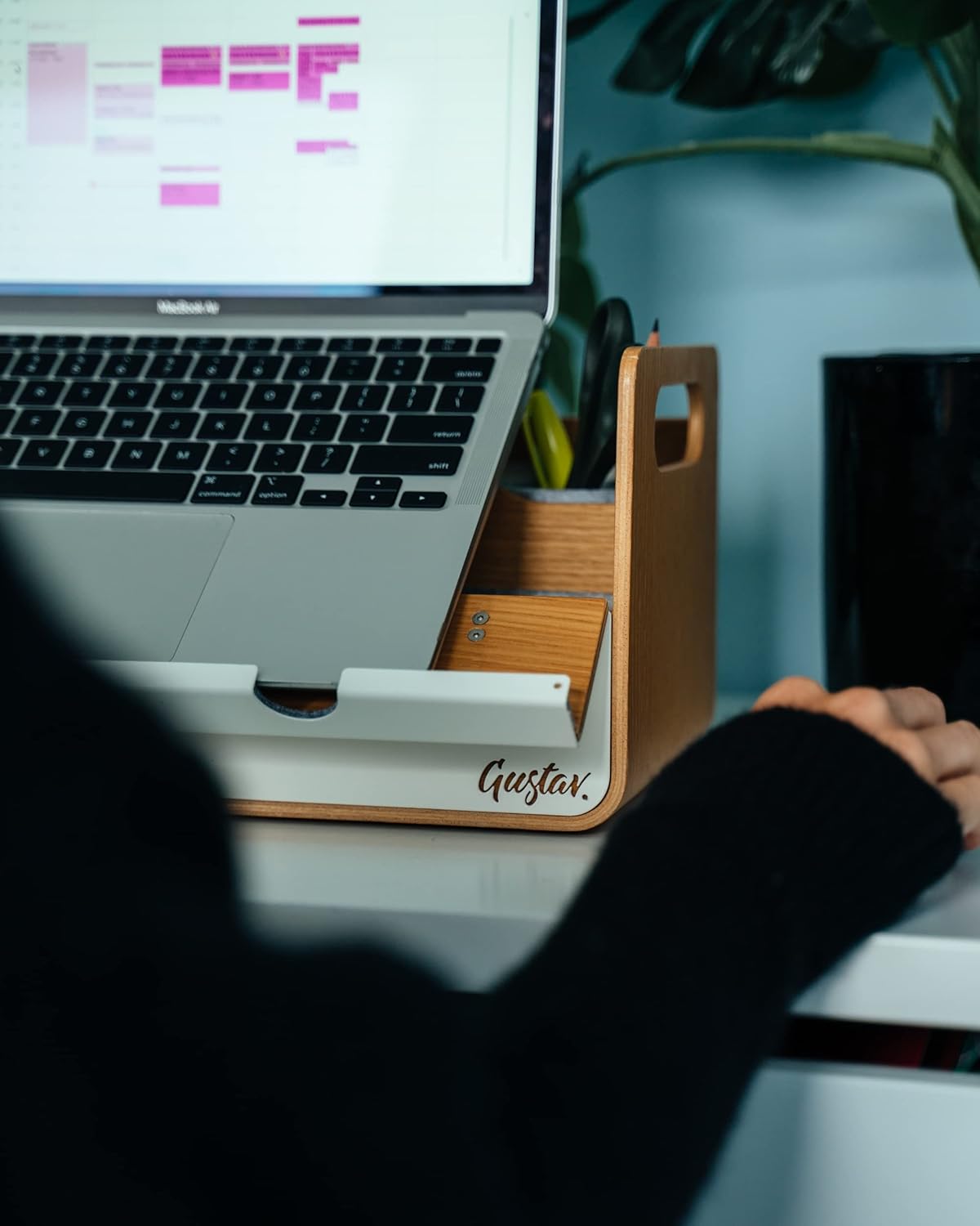 - Gustav Organizer und Laptop Ständer ist ideal für Desk Sharing Büros und die Unterstützung der Mitarbeiter im Home Office.