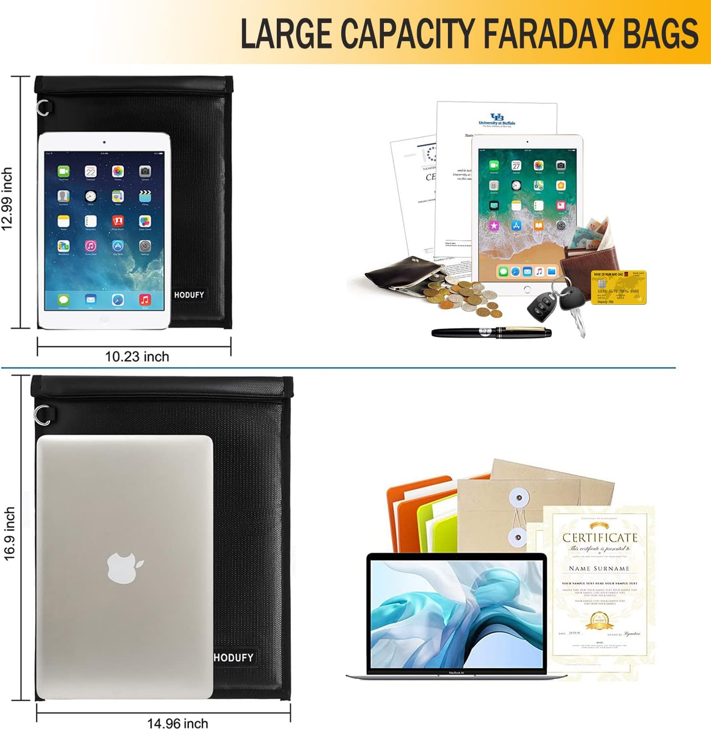 - ✔【Gross Kapazität Faraday Bags】 Gross Faraday Tasche entfaltete Grösse ist 20X15 Zoll, gefaltete Grösse ist 16.9X15 Zoll, passt auf grosse Laptops, Tablets, Handys, Karten, Bargeld, Dokument, Radios, GPS-Einheiten und andere elektronische