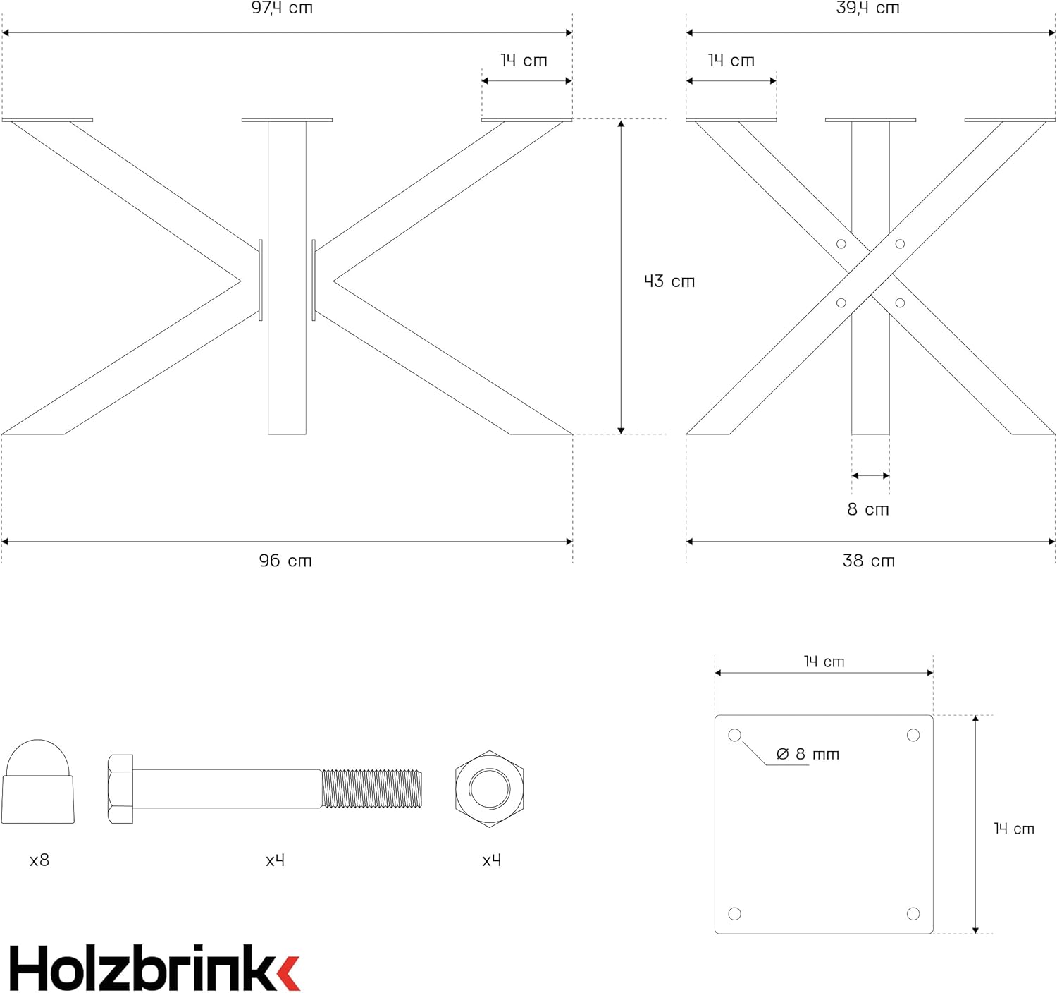 - Massive Ausführung: hergestellt aus Vierkantprofilen 60x60 mm – äusserst stabil und belastbar – für sehr grosse oder extrem schwere Holztischplatten wie geschaffen – unsere Tischbeine passen zu Tischplatten, die nicht kleiner als 100x42 cm sind