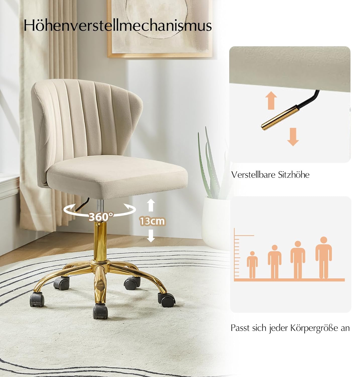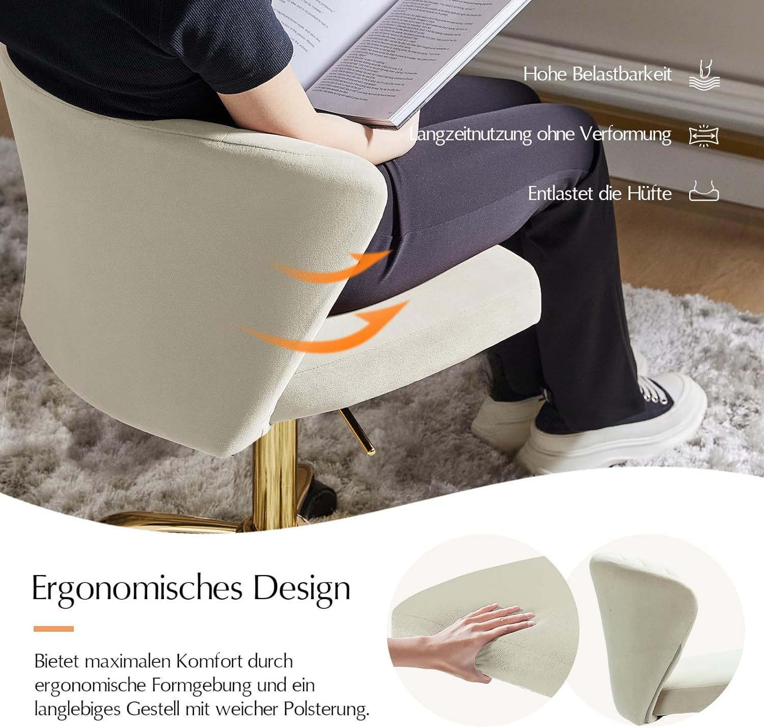 - Vielseitig verwendbar: Der Schminkstuhl mit hautfreundlichem Samtstoff in minimalistischem Design ergänzt verschiedene Räume wie Büros, Ankleidezimmer, Arbeitszimmer, Schlafzimmer und Schminkzimmer. Die einzigartige Linienführung und die leuchtenden