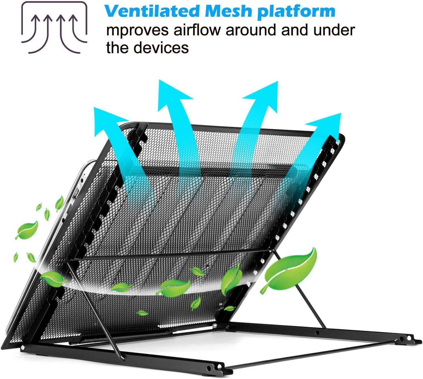 - 【Belüftetes Metallgitter】Der atmungsaktive PC Stand hilft dabei, die Luftzirkulation zu fördern und die Kühlung des Computers schnell zu machen, sodass bracht man keine Laptop- Lüfter oder Kühler zu benutzen.