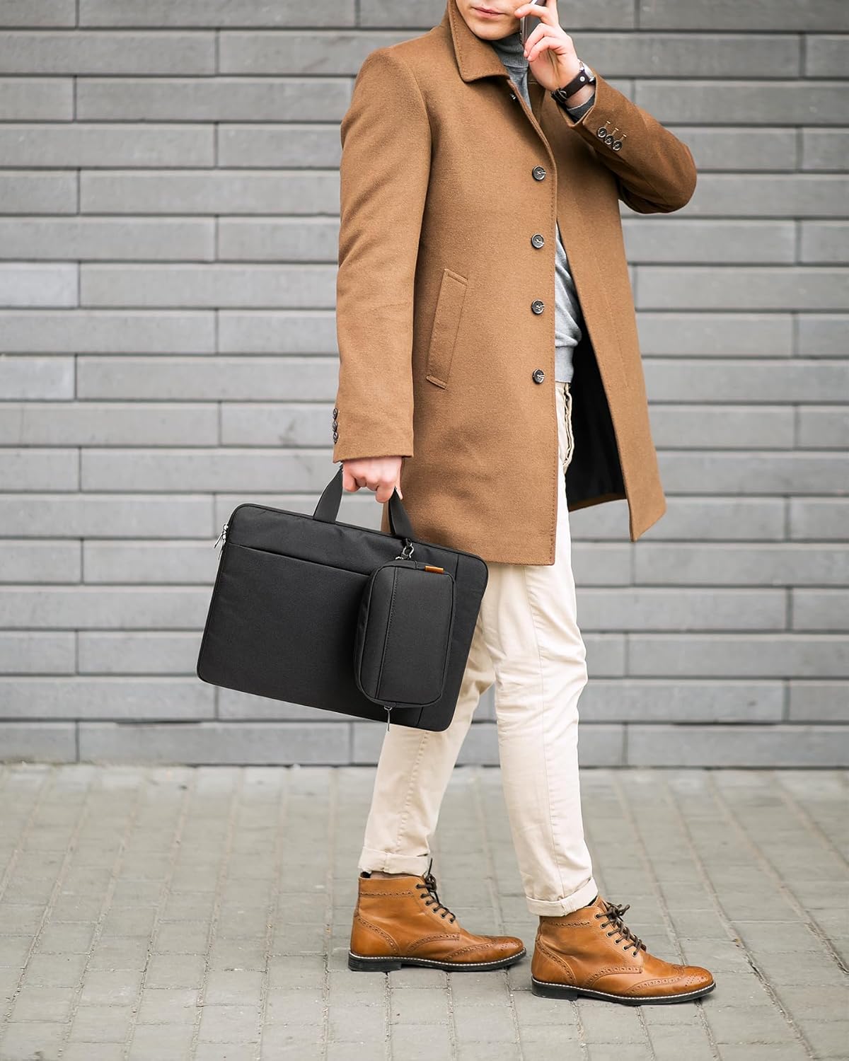 - Abnehmbare Zubehörtasche: Zum Lieferumfang gehört eine Zubehörtasche mit abnehmbarem Griff, die an der Laptoptasche befestigt oder als separate Aufbewahrungstasche verwendet werden kann. Die Abmessungen der Zubehörtasche sind 20 x 5 x 13 cm (7,87 x