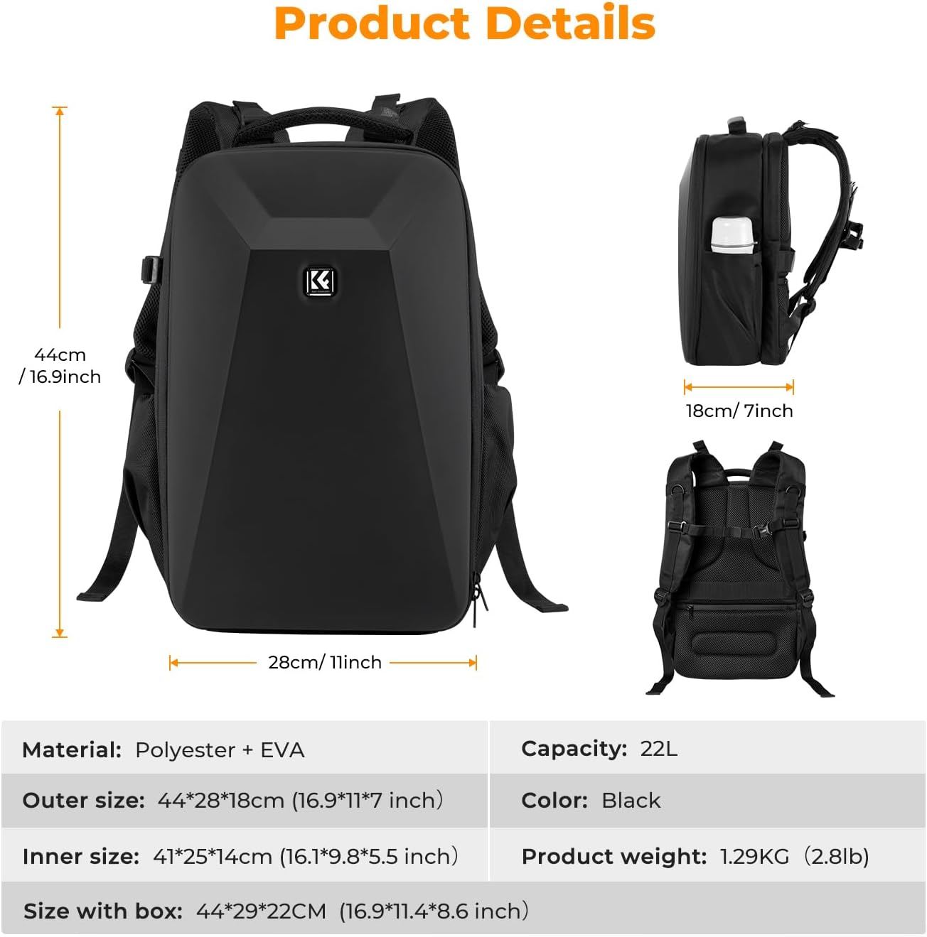 - 【Abmessungen】 44cm*30cm*19cm. Fassungsvermögen: 22L; Dieser multifunktionale Hartschalen-Kamerarucksack ist für verschiedene Marken von DSLR/SLR/spiegellosen Kameras konzipiert. Die herausnehmbaren modularen Einsätze als individuelle Trennwände