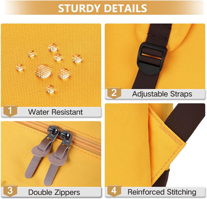 - √ Rücksichtsvolles Design: Die leichte Büchertasche ist bequem zu tragen, verdickte und verstellbare Schultergurte können Ihre Schultern beim Gehen entlasten. Glatte Reissverschlüsse erleichtern den Zugriff auf Ihre Gegenstände. An den
