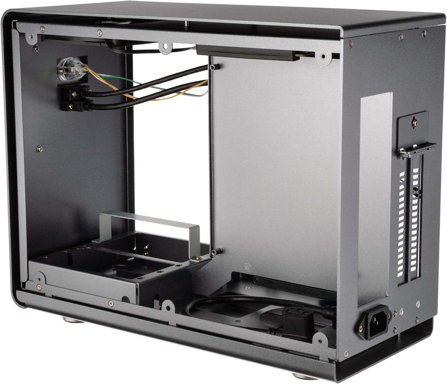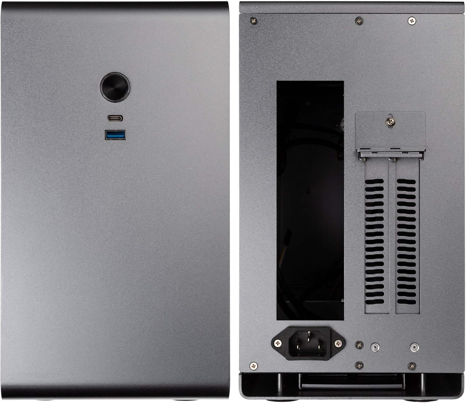 - EDLES PC-GEHÄUSE - Hochwertiges SFF-Gehäuse komplett aus Aluminium. Die Oberfläche der Aussenseite ist in der Farbe Titangrau anodisiert und sorgt so für einen einprägsamen und erstklassigen Look in jedem Setup