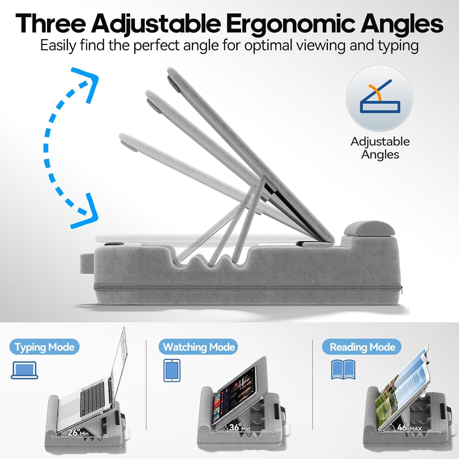 - 3 EINSTELLBARE ERGONOMISCHE WINKEL: Das verstellbare Laptop Kissen mit Polster wurde hinsichtlich der Winkel für verschiedene Betrachtungsmodi optimiert. Der höchste Winkel vom Laptoptisch eignet sich ideal zum Lesen oder aufrechten Sitzen, der