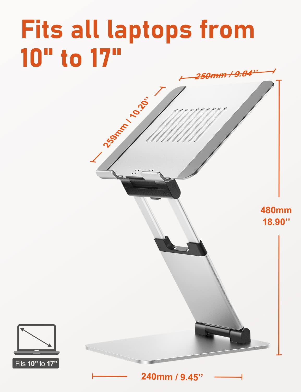 - Verabschieden Sie sich von langen Stunden des Sitzens: Dieser Laptopständer für den Schreibtisch bietet einen Höhenbereich von 2,1 Zoll bis 21 Zoll mit einem einziehbaren Zuggriff. Die extra grosse Höhenverstellbarkeit macht Sie während des langen