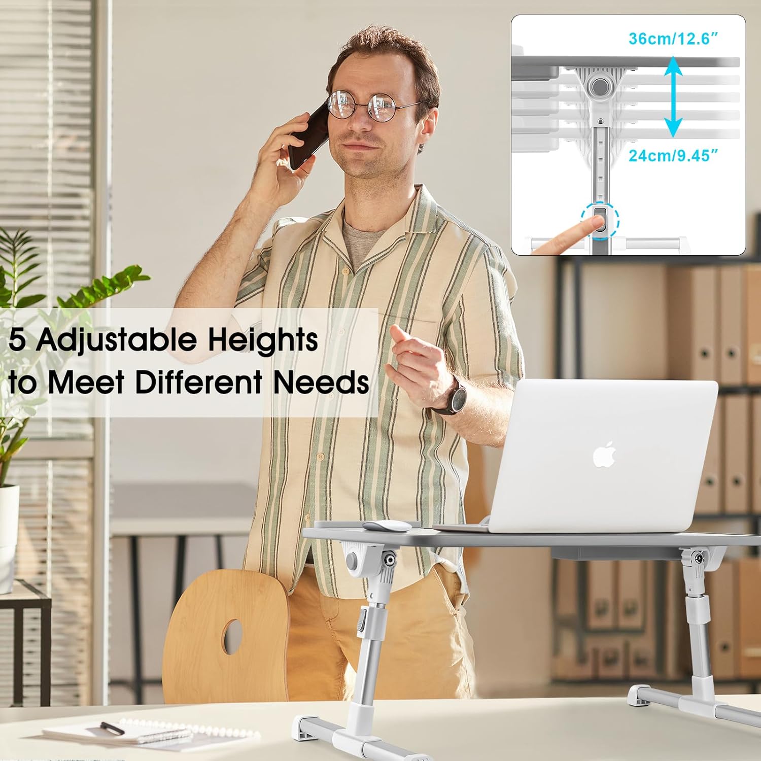 - 【Höhenverstellbar】Die Laptoptisch mit anhebbaren Tischbeinen aus Aluminiumlegierung, die auf eine Höhe von 5 Stufen (24-26-28-30-32cm) mit einem federbelasteten Druckknopf an jedem Bein eingestellt werden können. Sie müssen nur den die
