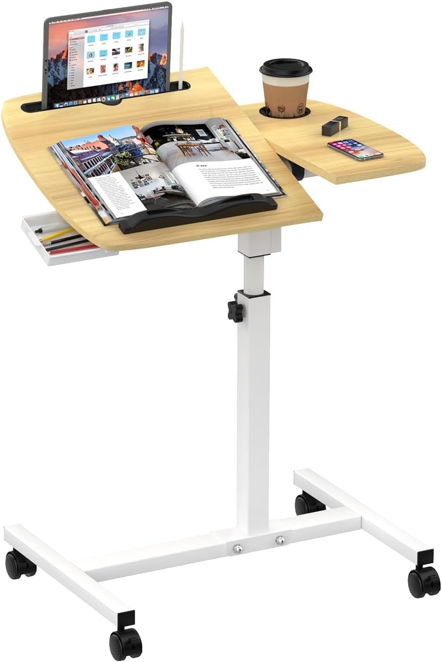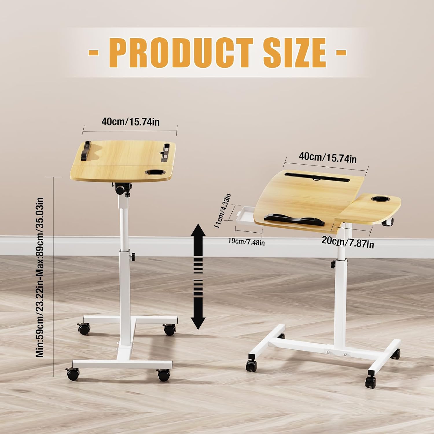 - 【Grösse】Betttisch auf rollen Grösse: 60x40 cm.Laptoptisch mit einstellbarer Arbeitshöhe zwischen 59-89cm.Belastung: 25 kg.Schreibtisch mit Kleiner Schublade und stopperleisten.Mobiler kaffeetisch mit tablet-schlitz und cup