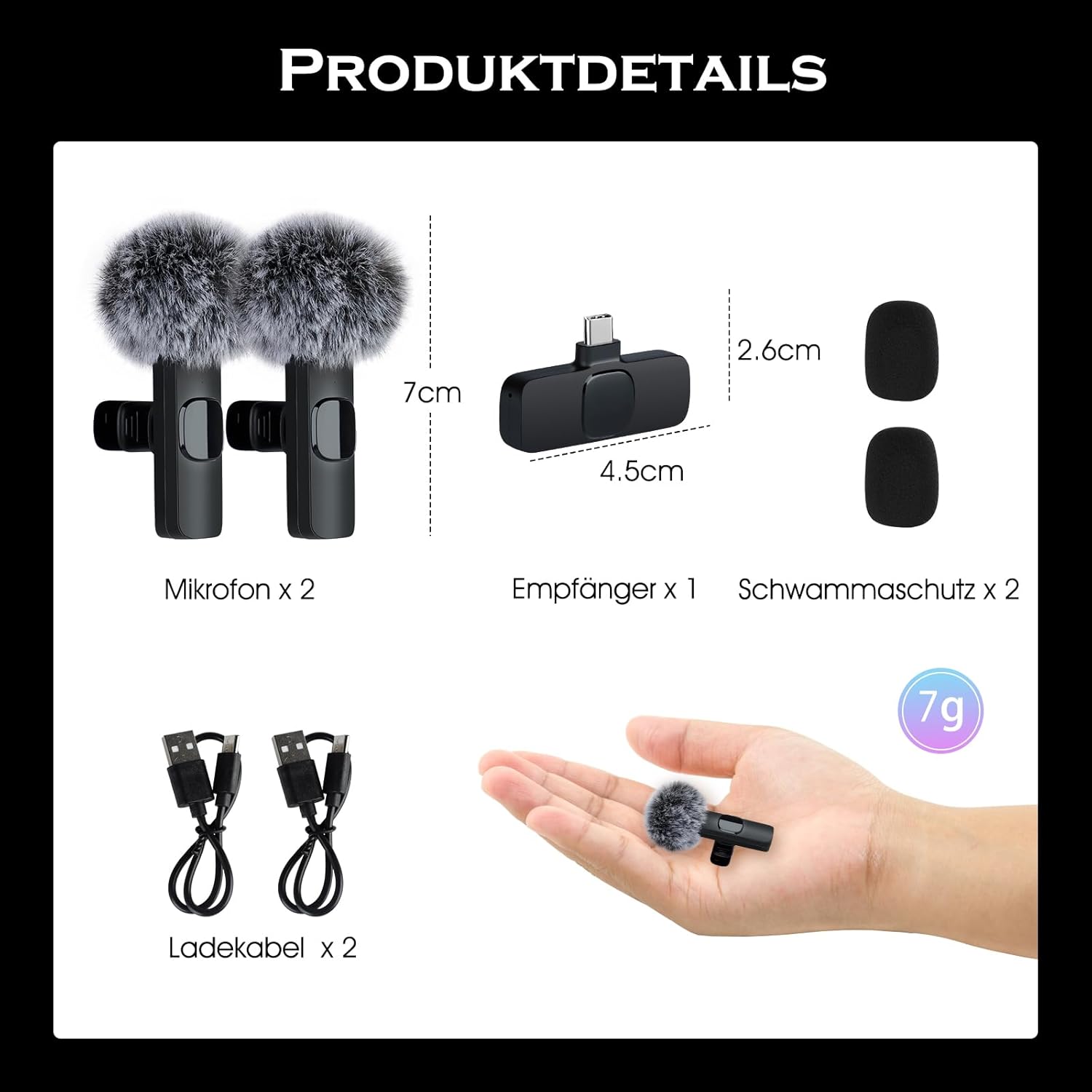 - 【Intelligente Rauschunterdrückung】Mini Mikrofon mit Kugelcharakteristik und Rauschunterdrückung, mit hochempfindlichem Mikrofonkopf und 360°-Aufnahmemodus für klare Aufnahmen auch in lauten Umgebungen. Das drahtlose Mikrofon ist ausserdem mit