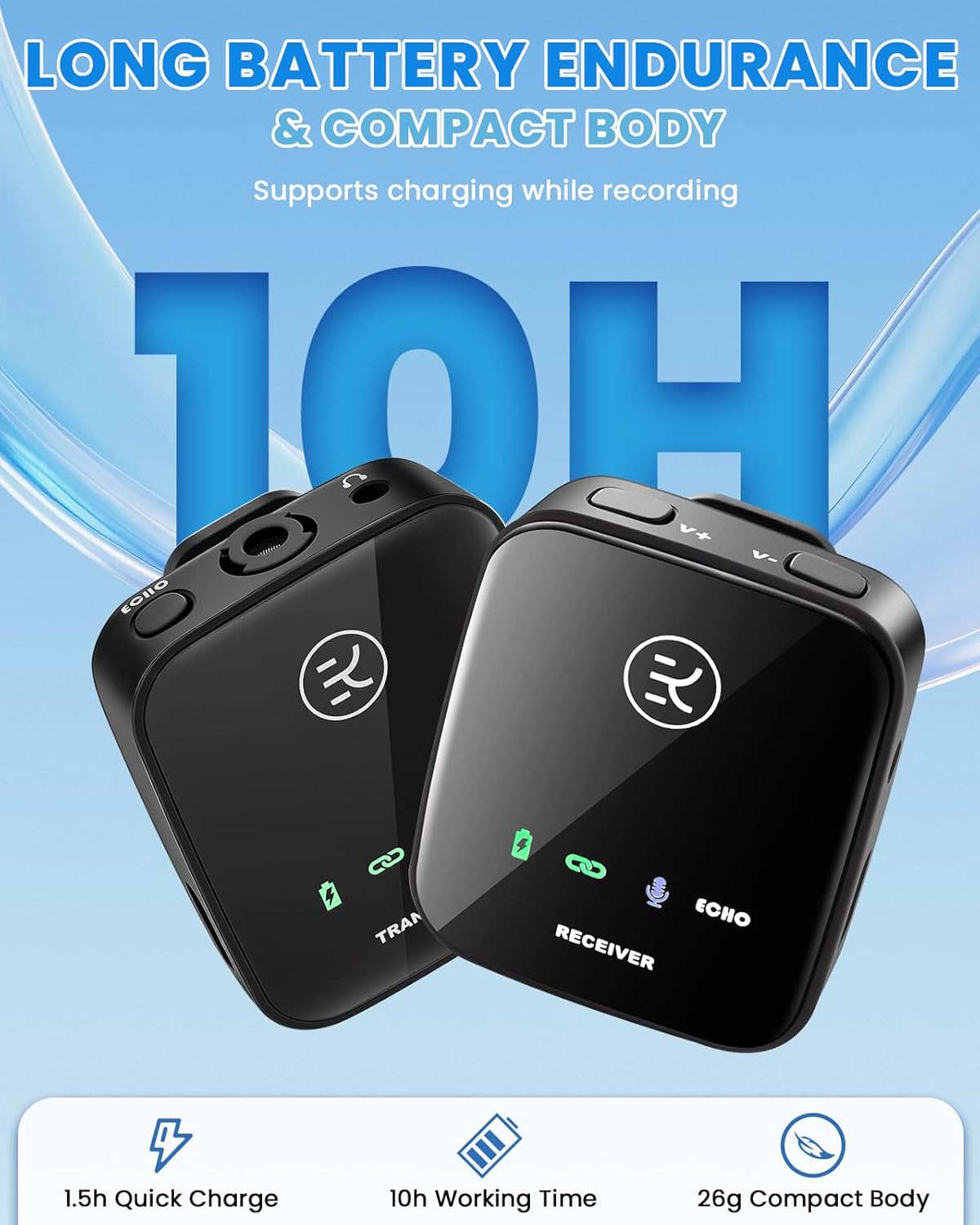 - 【Kleiner Körper und grosse Kapazität】 Dieses kabellose Ansteckmikrofon ist mini und tragbar. Das leichte Design mit einem einzigen Gewicht von nur 26 g macht es schön, ohne Belastung zu tragen. Die eingebaute Lithiumbatterie mit grosser Kapazität