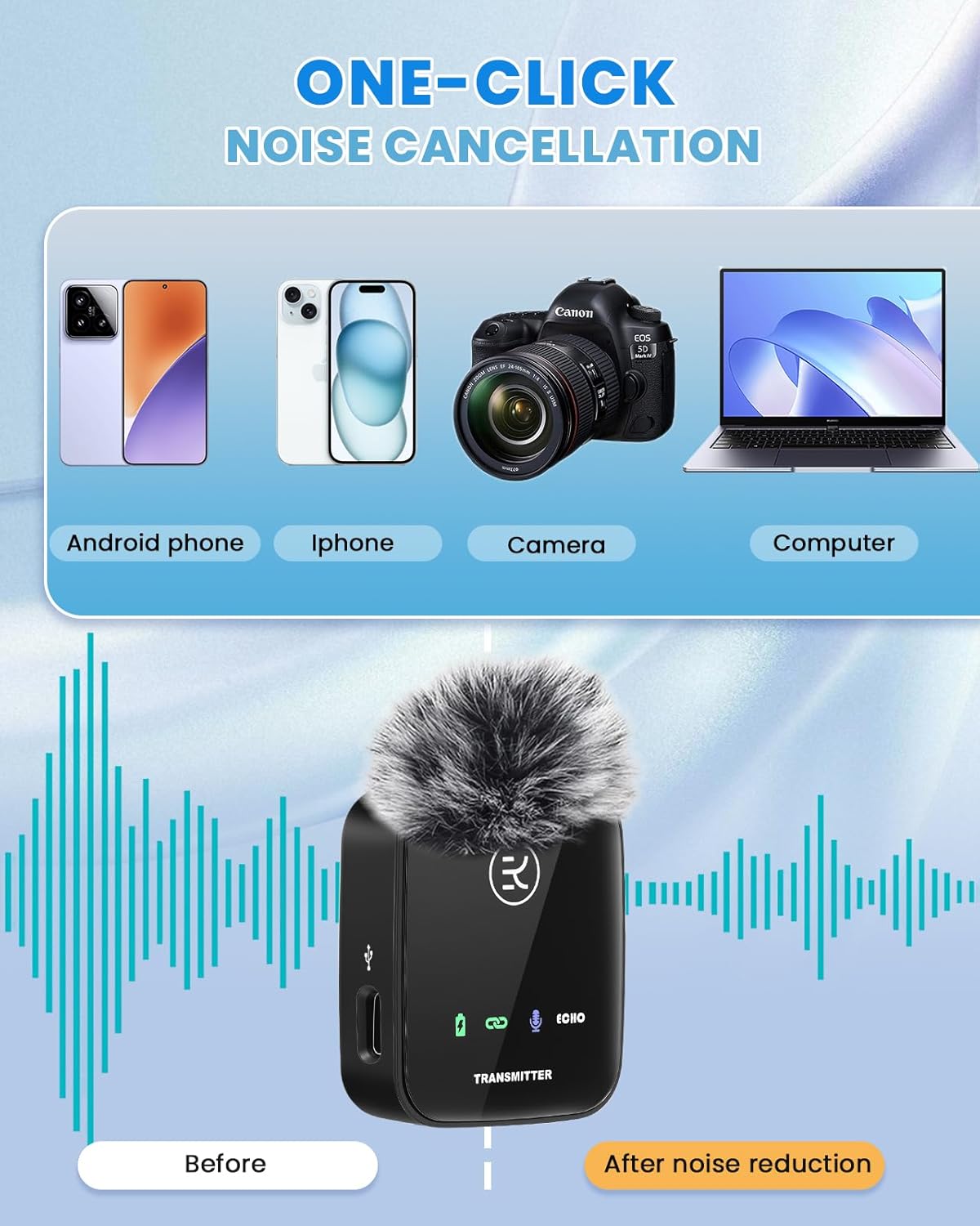 - 【Intelligente Rauschunterdrückung & 360° omnidirektionaler Tonabnehmer】Das kabellose Lavalier-Mikrofon verfügt über einen eingebauten professionellen DSP-Rauschunterdrückungschip und ist mit einem Windschutz ausgestattet, der Geräusche während