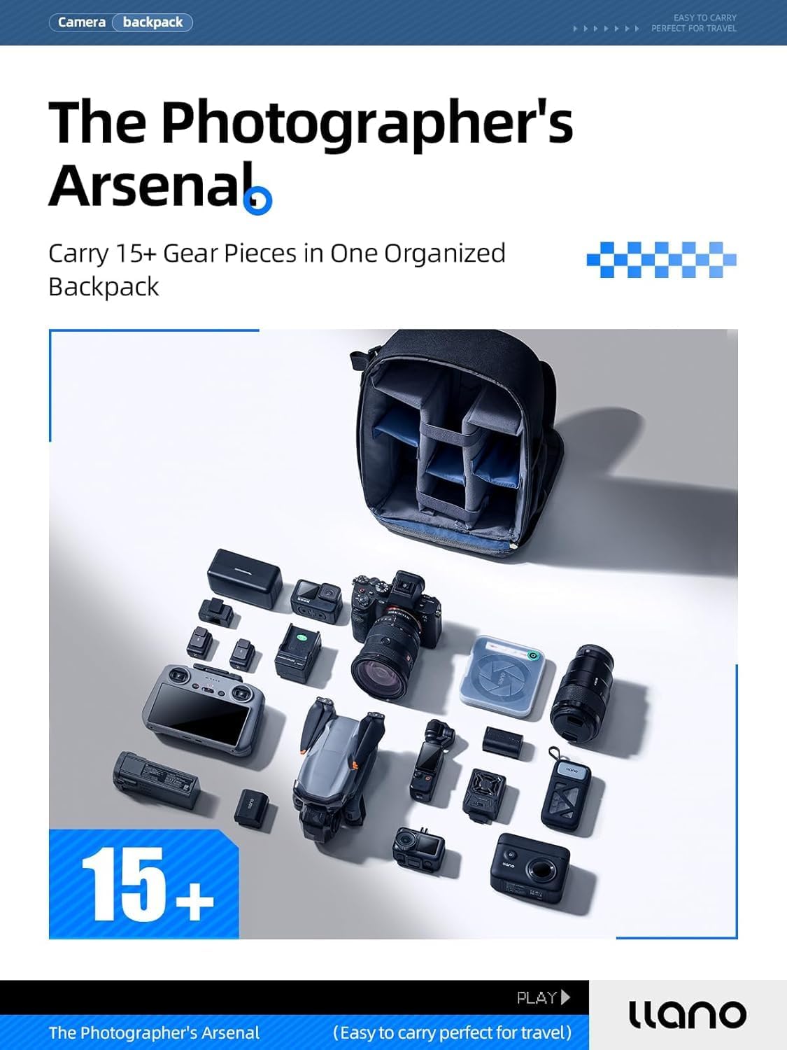 - Multifunktionelles Aufbewahrungsdesign: Vorderfach für Filter, Powerbanks, Dokumente usw., seitliche Stativhalterung sowie versteckte 16"-Laptop-Hülle (aktualisiert von 14"). Alle Fächer sind gepolstert, um die Ausrüstung zu schützen.