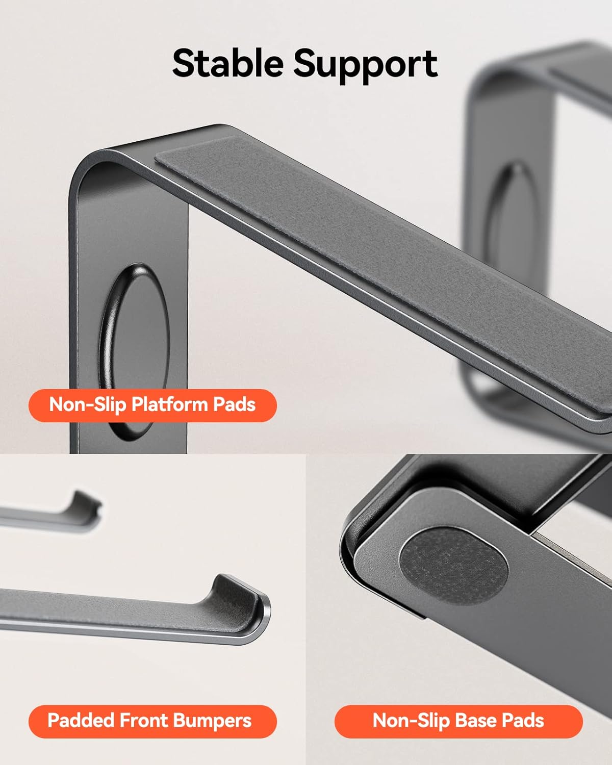 - Wärmeableitung - Der Laptopständer mit offener Rückseite bietet die beste Belüftung und den besten Luftstrom, um Ihr Notebook oder Ihren Gaming-Laptop zu kühlen und eine Überhitzung zu verhindern. Die Metallmaterialien tragen ebenfalls zur