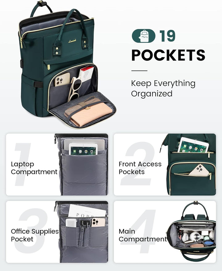 - 🧳 MIT USB LADEANSCHLUSS: Diese Uni Tasche Damen verfügt über einen USB Anschluss, damit kann man Power Bank in dem Rucksack legen, und Handy benutzen beim Laden.