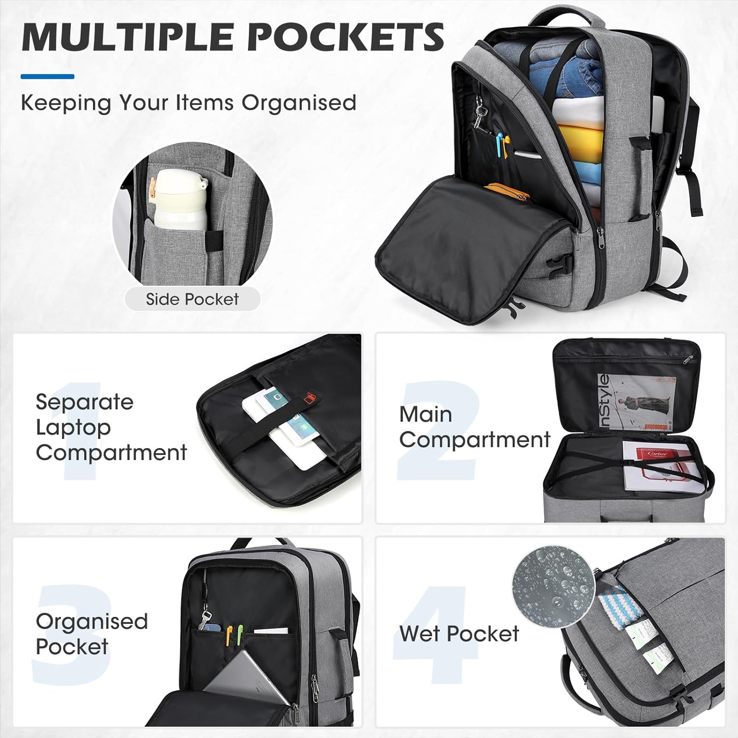 - Separates Laptop-Fach&Grosses Hauptfach: Dieser Reiserucksack verfügt über ein separates Laptop-Fach mit einem gepolsterten Laptop-Fach für einen 17,3"-Laptop, ein Tablet-Fach und zwei Netztaschen für Kabel und Ladegeräte. Der Handgepäck hat ein