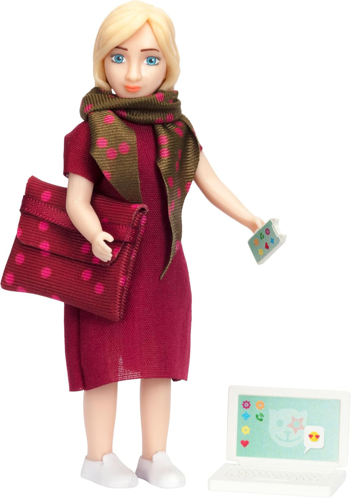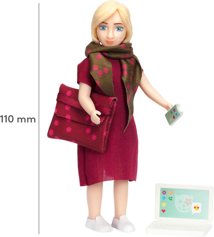 - PUPPE FÜR PUPPENHAUS MIT MINILAPTOP Die Puppe in diesem Biegepuppen Puppenhaus Figuren Set hat ihren Puppenhaus Laptop unter den Arm geklemmt während sie auf dem Weg ins Büro telefoniert. Unsere besonderen Puppen fürs Puppenhaus machen jede