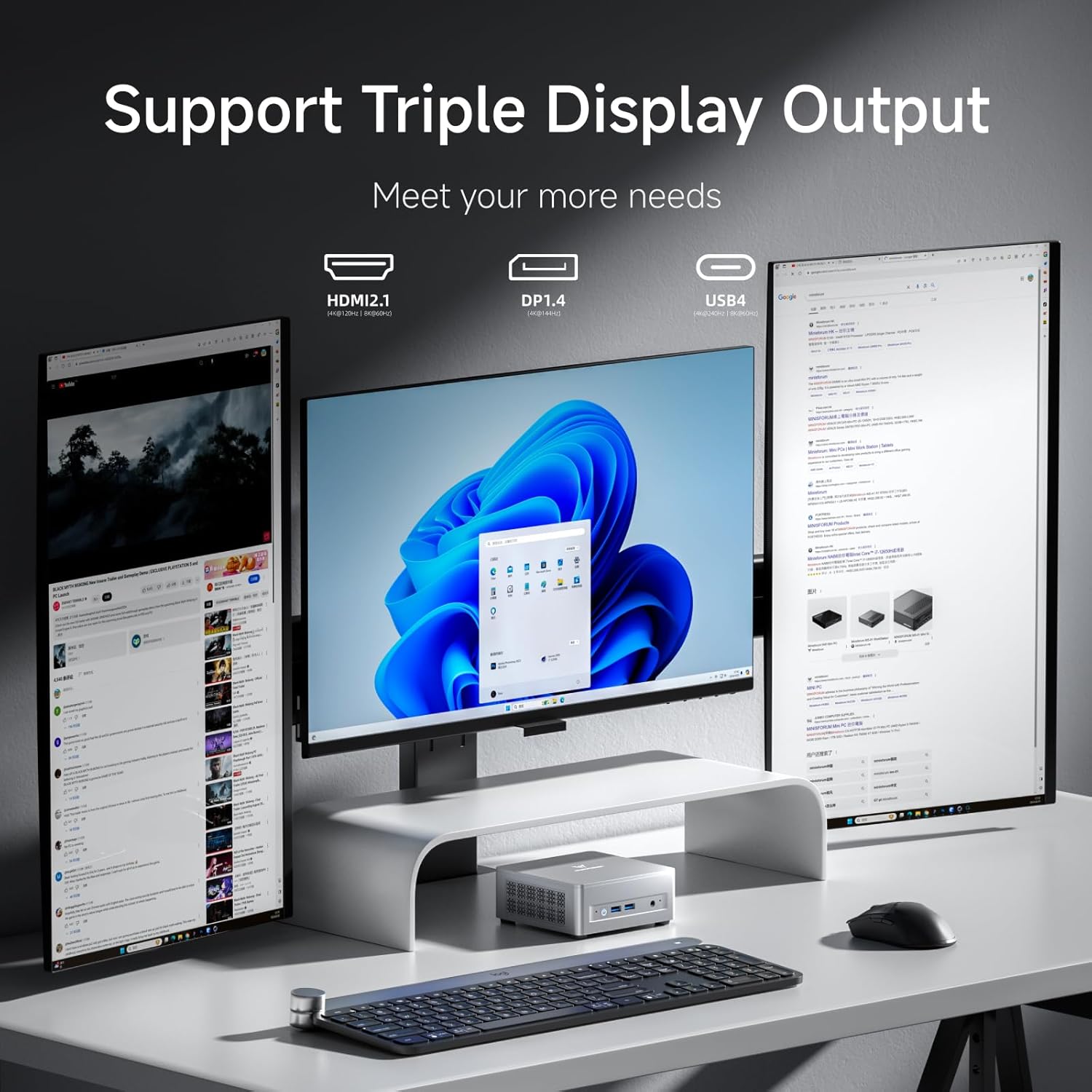 - 【Fortschrittliches Kühlsystem】 Mit einem aktiven Phasenwechselmaterial-Kühlsystem reduziert dieser Mini-PC die CPU-Temperatur im Vergleich zu passiven Lösungen um 25 %. Dies trägt dazu bei, auch unter hoher Last eine stabile, effiziente Leistung