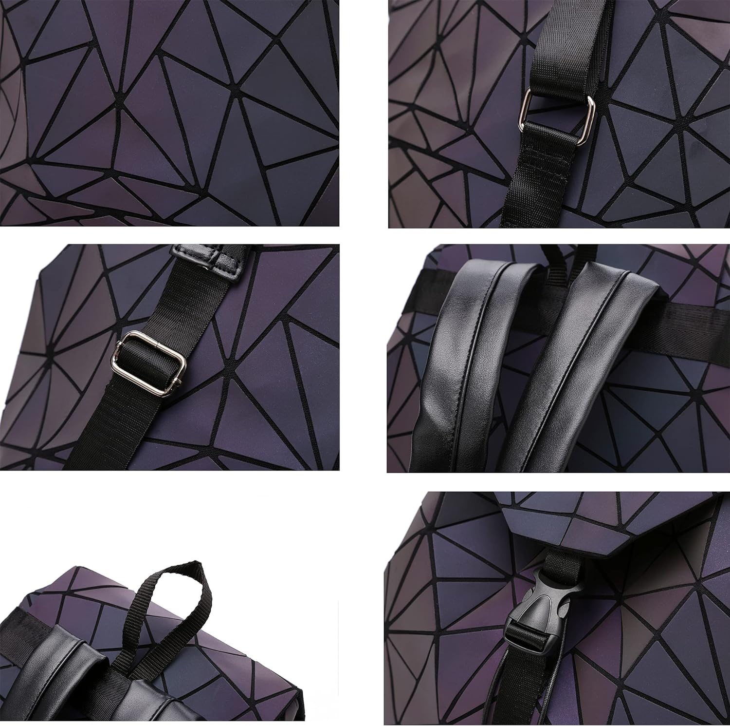 - 【Shining & lässig Rucksack:】 Dieser Geometrisch Rucksack besteht aus einem speziellen Material, dessen Farbe sich mit dem Licht ändert.