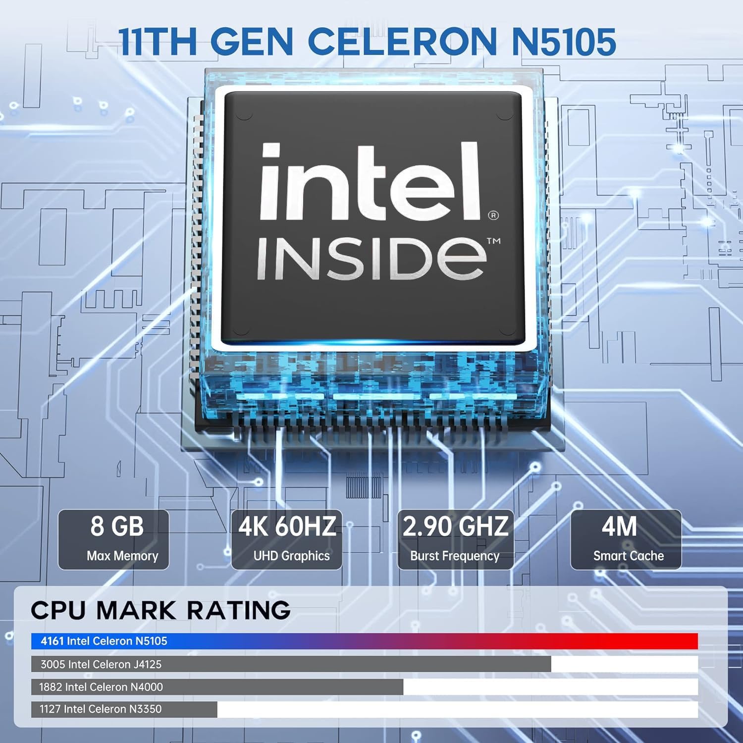 - 【11th Gen Ιntel Cerelon N5105】Der 5,04 x 5,04 x 2,03 Zoll grosse NiPoGi Mini PC ist mit dem Ιntel Celeron Prozessor N5105 der 11. Generation (4C/4T, 4M Cache, Basisfrequenz 2,0GHz, bis zu 2,9 GHz) und Ιntel UHD Graphics, 800 MHz Burstfrequenz