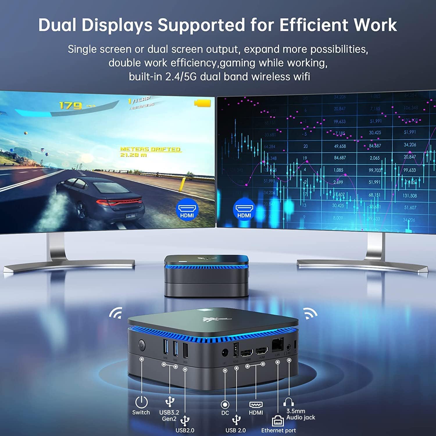 - 【 UHD 4K Dual-Bildschirm-Unterstützung】NiPoGi Mini-Computer mit UHD-Grafik 450MHZ (Burst-Frequenz 800 MHZ) gemeinsame Grafik funktioniert gut für 4K (60Hz) Video, Spiel und Bearbeitung von Grafiken.