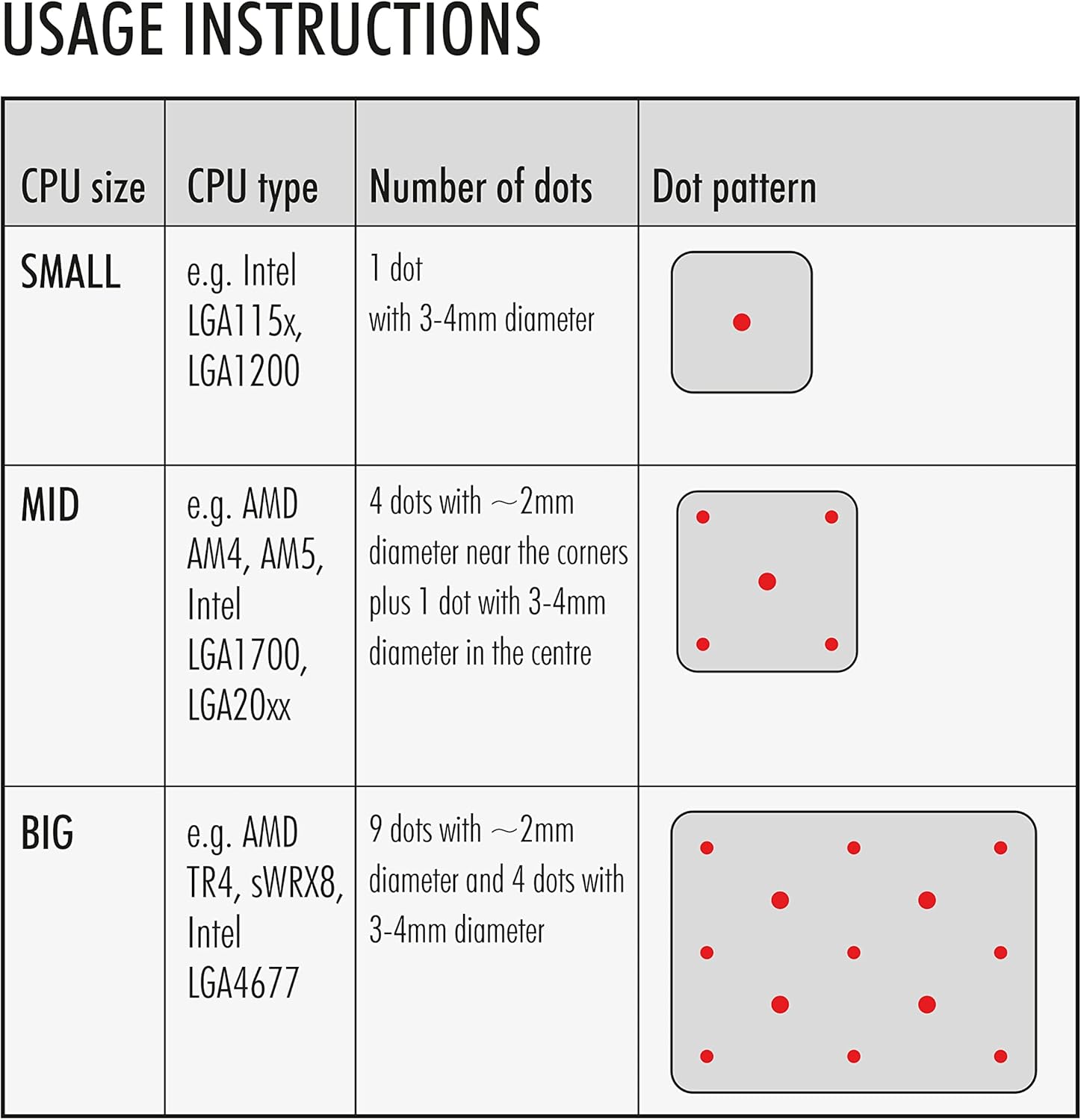 - Einfache Anwendung (muss vor der Kühlermontage nicht verstrichen werden) und kinderleichte Reinigung mit trockenem Küchen- oder Taschentuch (kein Reinigungsalkohol erforderlich)