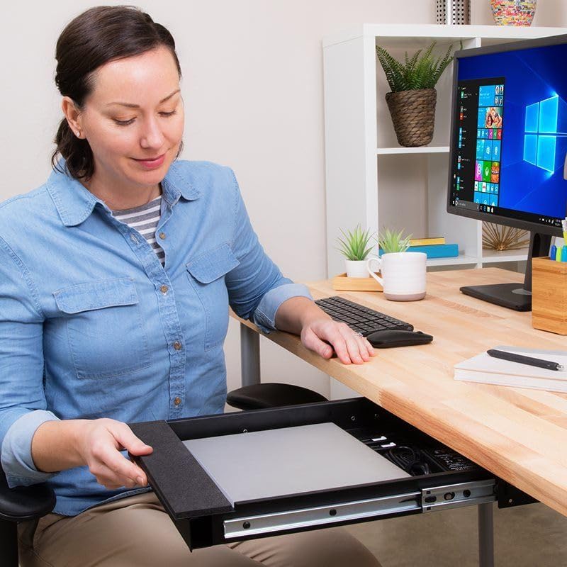 - Halten Sie Ihren Laptop immer sicher: Stellen Sie sicher, dass Ihr Notebook immer dort ist, wo Sie ihn gelassen haben mit diesem Untertisch-Organizer von Penn Elcom! Diese Sicherheitsschublade wird mit 2 Schlüsseln geliefert, so dass sie vollständig