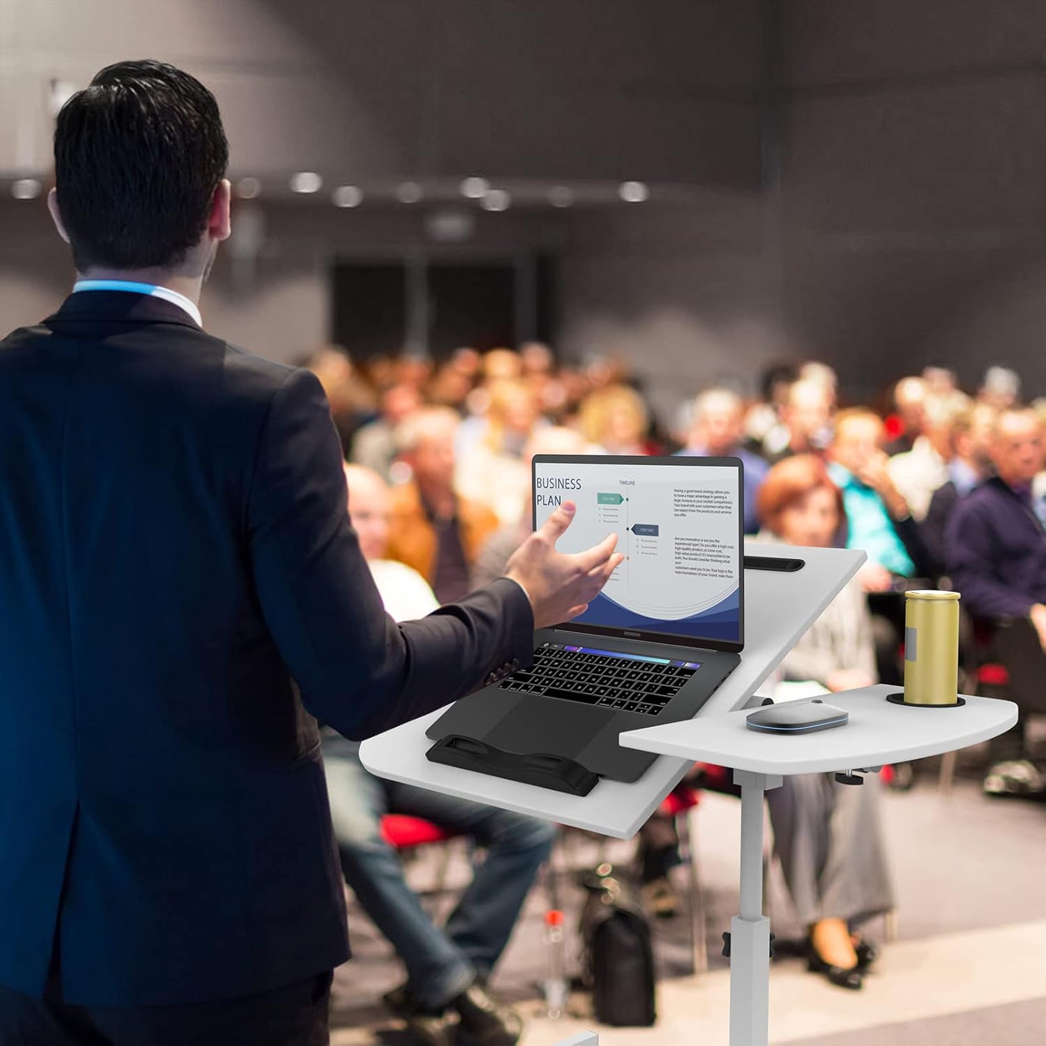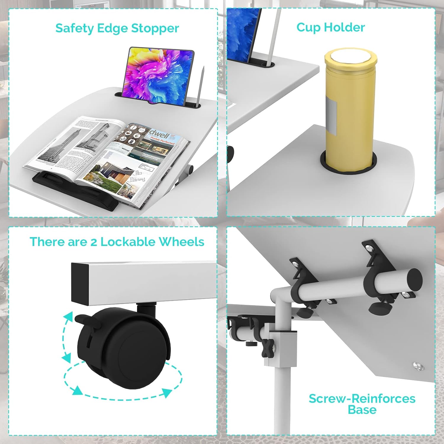 - 【Gesundes Arbeitsmodus】Die Höhe kann frei zwischen 61 mm und 95 mm eingestellt werden, mit dieser Funktion können Sie bei der Arbeit vom Stehen ins Sitzen wechseln. Die bequeme Höhe wird Nackenschmerzen gelindert. Dieser multifunktionale Mobiler