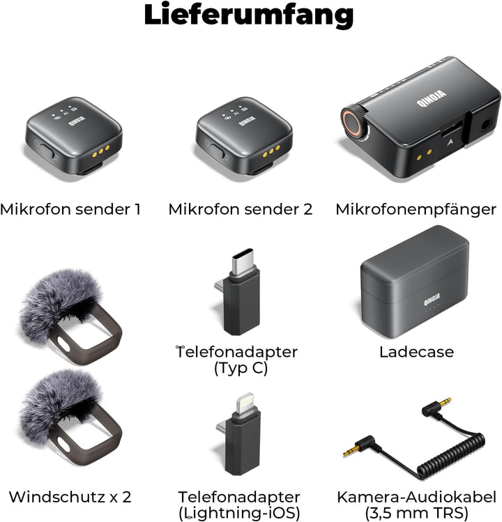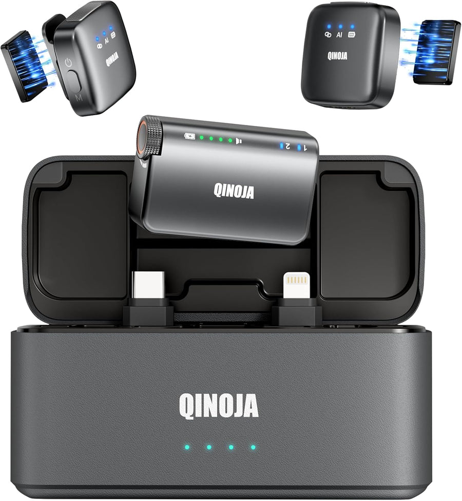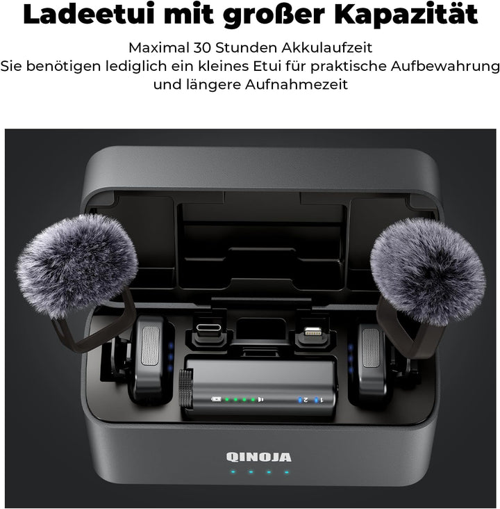 - Ladekoffer mit grosser Kapazität: Das QINOJA-Mikrofonset mit Ladekoffer mit grosser Kapazität bietet eine Akkulaufzeit von bis zu 30 Stunden, ideal für lange Reisen, Live-Streaming, Interviews, Vlogs und andere intensive Nutzungsszenarien, genug für