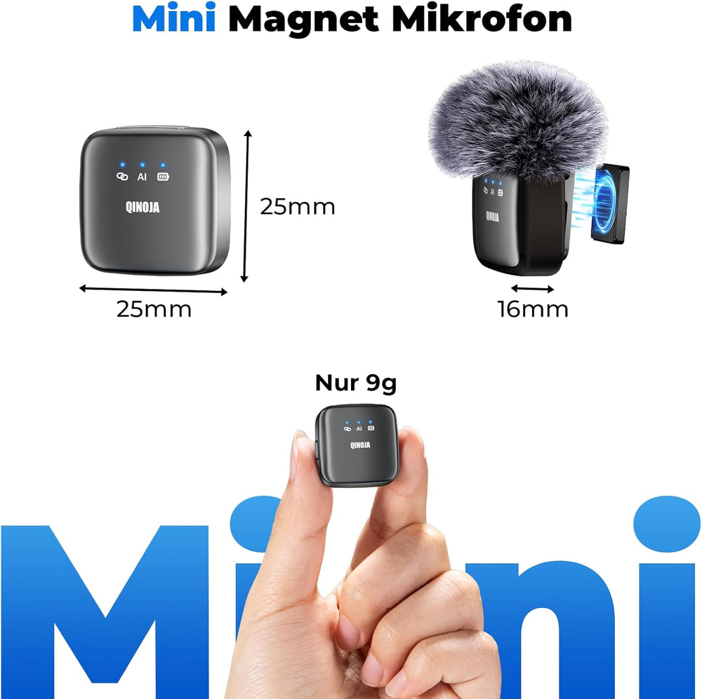- Mini-Magnetmikrofon: Dieses neu entwickelte Mikrofon für 2025 ist kompakt, misst nur 25 x 25 mm und wiegt nur 9 g. Es kann problemlos auf der Brust, am Kragen, an der Hutkrempe und am Brillengestell getragen werden, wodurch es bei der Aufnahme schwer zu