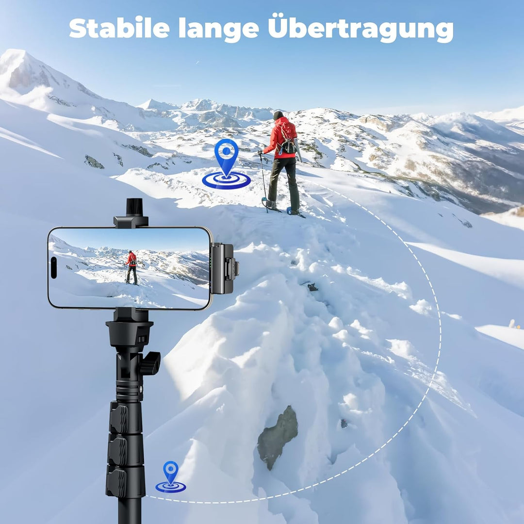 - 100 m Übertragungsreichweite: Dank der integrierten, fortschrittlicheren Sende- und Empfangschips beträgt die Signalreichweite unter ungehinderten Bedingungen 100 m, was 400 % höher ist als die 20 m herkömmlicher Mikrofone.