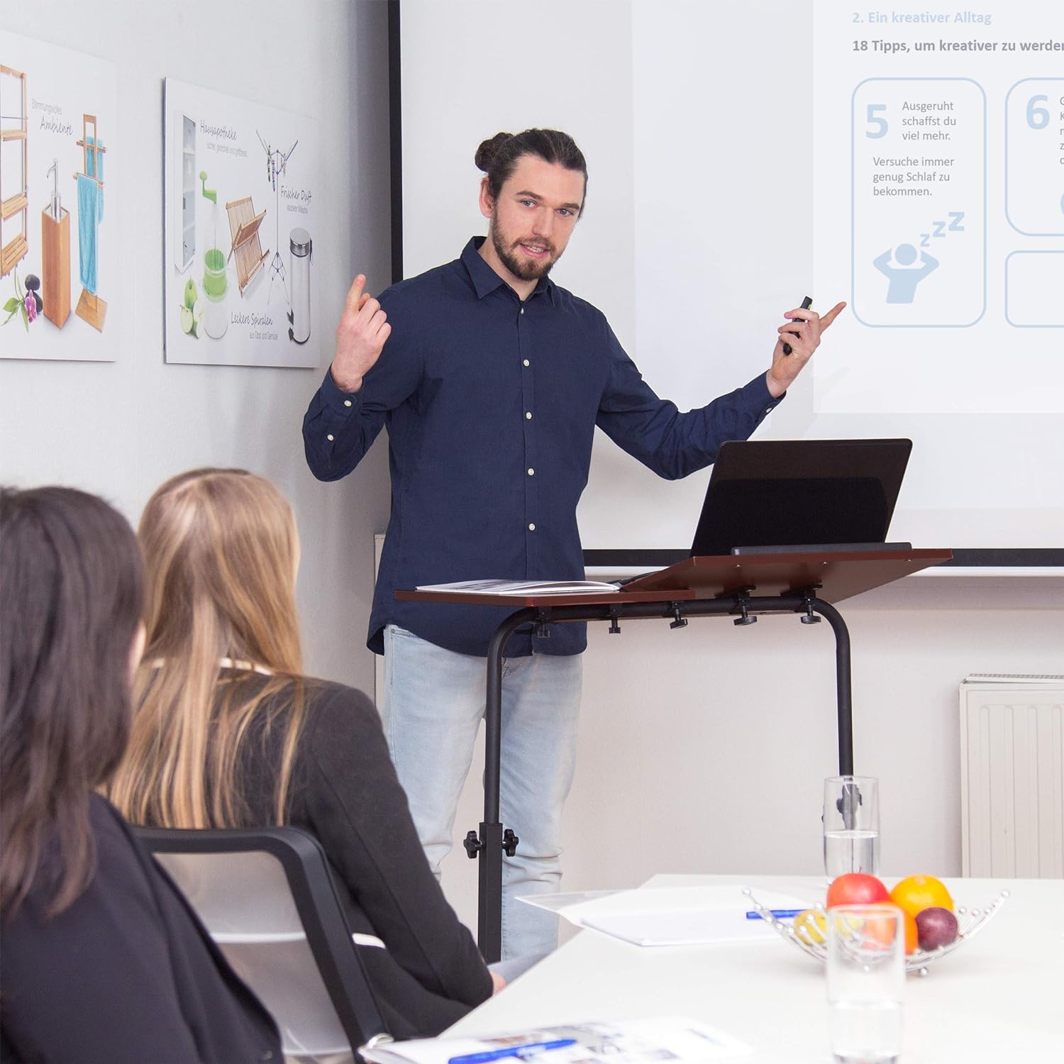 - Sicherer Stand durch pulverbeschichteten Stahl-Fuss auf 2 Arbeitsplatten - Bei einer Maximalbelastung von 10 kg bis 20 kg je nach Arbeitshöhe - Als Laptoptisch, Rednerpult, Beamertisch ideal