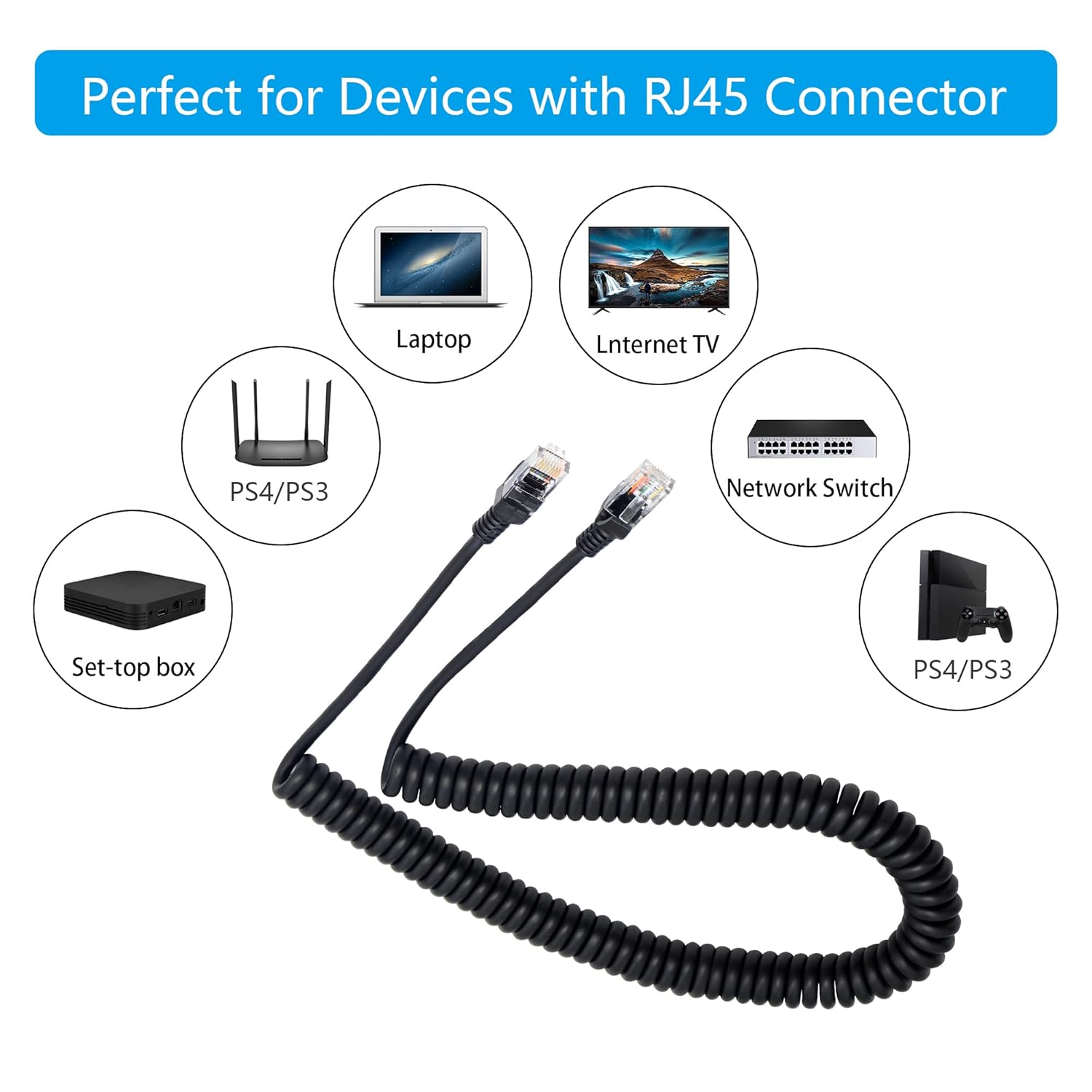 - 【Spring Design】RJ45 Cat5e Ethernet Federkabel, wenn unsere zwei Geräte verbunden sind, ist das Federkabel tragbar und hat keine Wicklung, (Dehnungslänge: 4.92Ft) so lange wie Sie es dehnen wollen, es ist bequemer und ordentlicher zu verwenden.