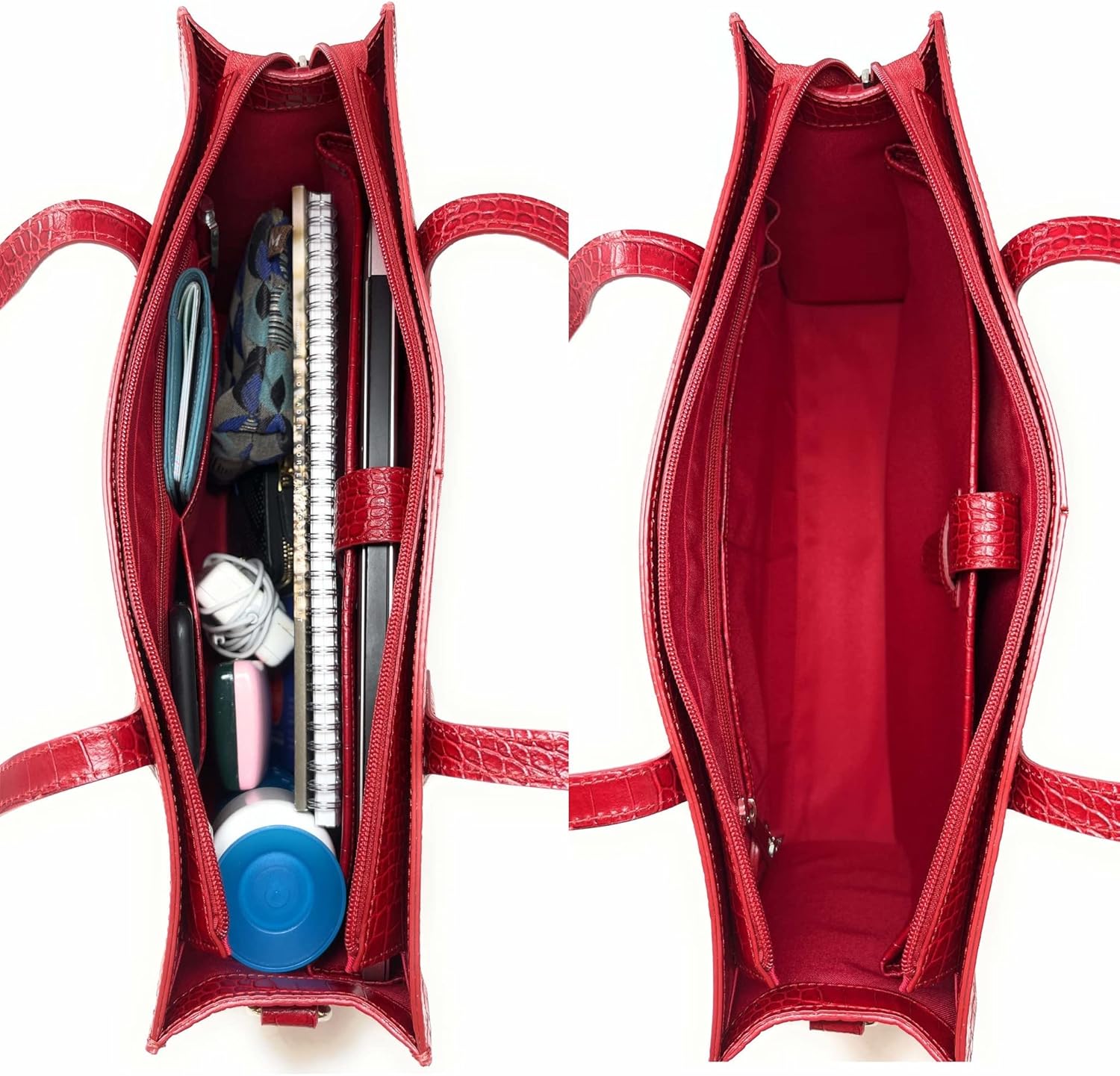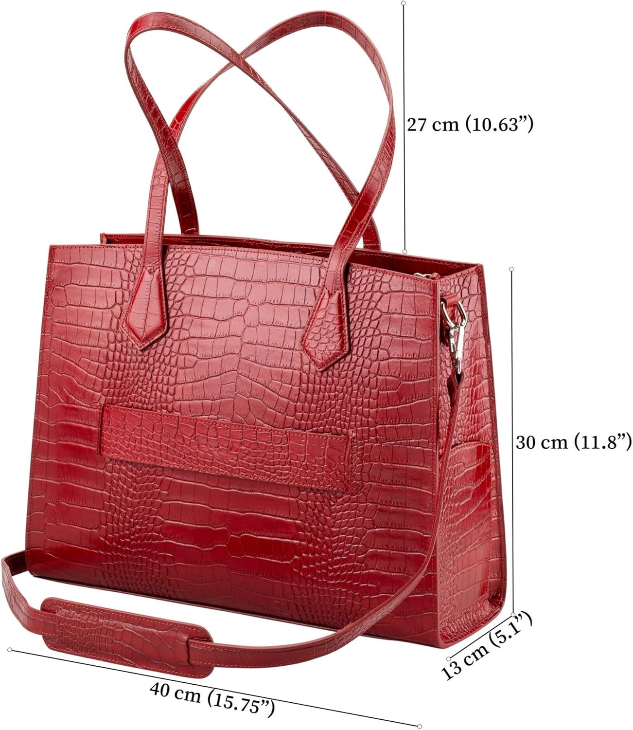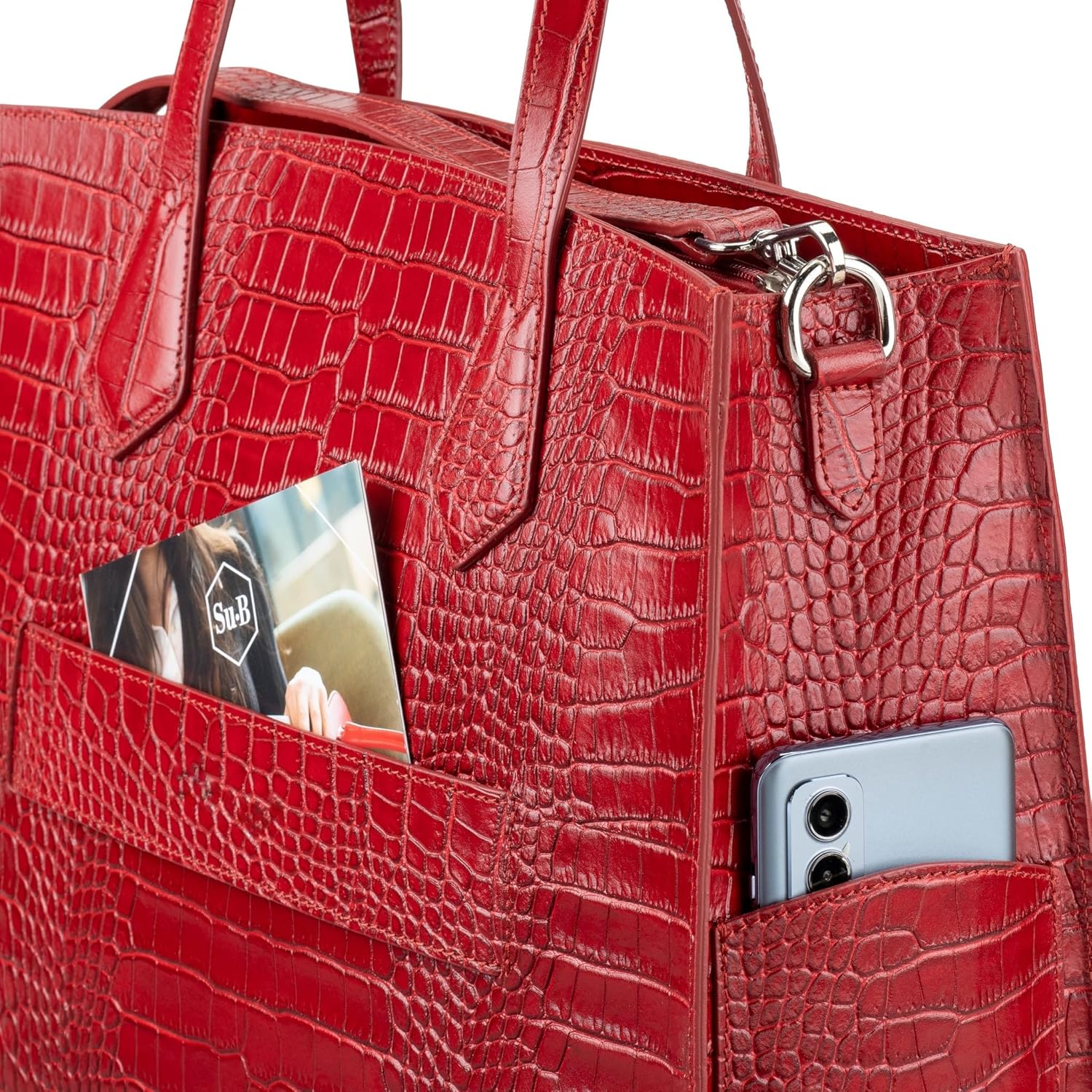 - Leichtgewicht: Diese Damen-Schultertasche wiegt nur 1 kg und besteht aus glattem Splitleder mit einem auffälligen roten Innenfutter, das für einen modernen und eleganten Look sorgt.