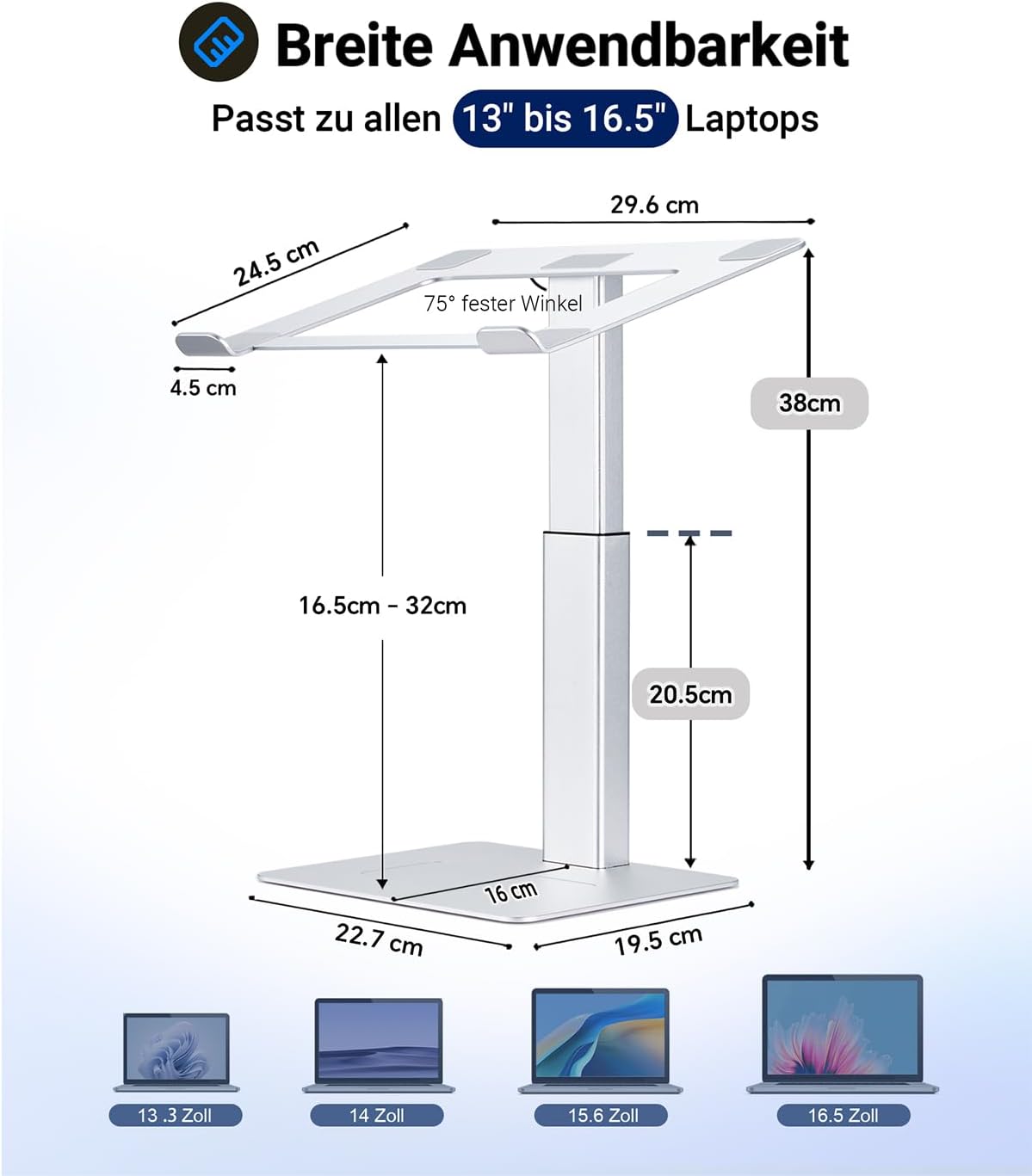 - BREITE ANWENDBARKEIT FÜR 13"-16.5" LAPTOPS: Dieser Laptop Halter passt zu Laptops von 13" bis 16.5", darunter die populären Marken wie MacBook, Microsoft Surface, Google Pixelbook, Dell, HP, Asus, Lenovo, Samsung, Acer, Chromebook und mehr. Mit einer
