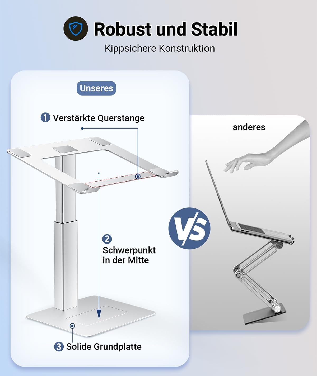 - HOHE STABILITÄT: Dieser Laptop Erhöhung ist aus hochwertiger Alu-Legierung gefertigt und bietet stabile und dauerhafte Halterung für deinen Laptop. Dank seines niedrigen Schwerpunkts und der soliden Grundplatte kann er Laptops mit einem Gewicht von
