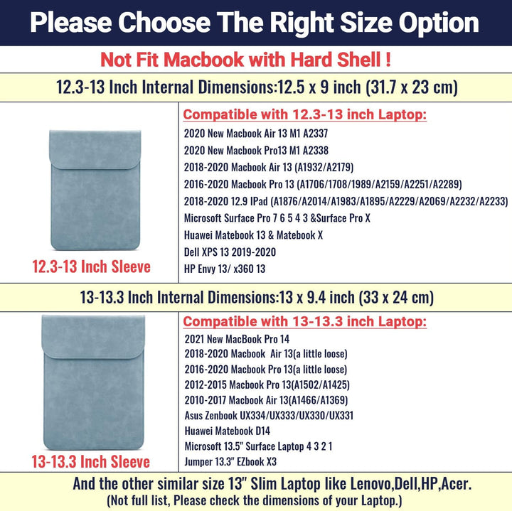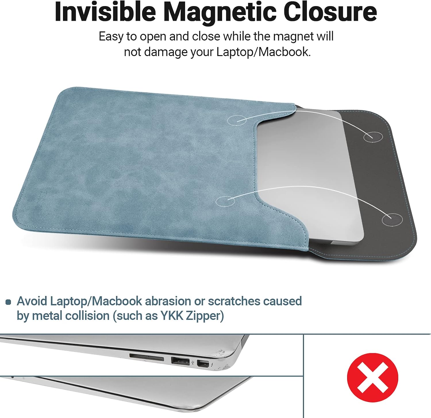 - [Material]: Die aussenseite der 12,3-13 zoll laptoptasche besteht aus wasserabweisendem Wildlederimitat und kratzfestem, das leicht zu reinigen und schnell zu trocknen ist. Die unsichtbare Magnetabdeckung verhindert, dass Ihr Laptop aus der Laptoptasche