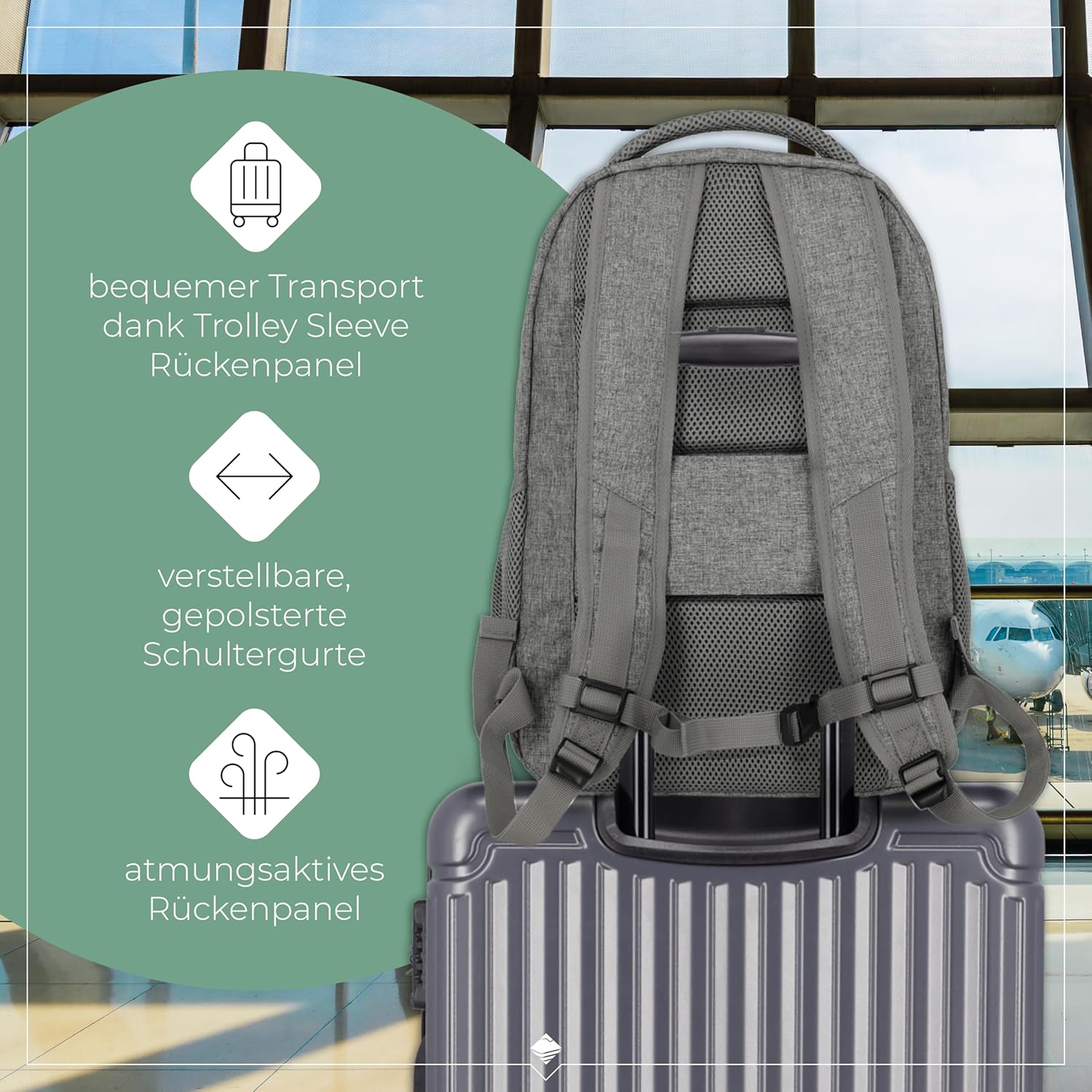 - BASICS: Für jede Reise der passende Begleiter vielseitig einsetzbar als Freizeitrucksack für Städtetrips, Ausflüge sowie als Uni, Schul und Arbeitsrucksack. Bequem auf Koffer zu befestigen dank Trolley Sleeve