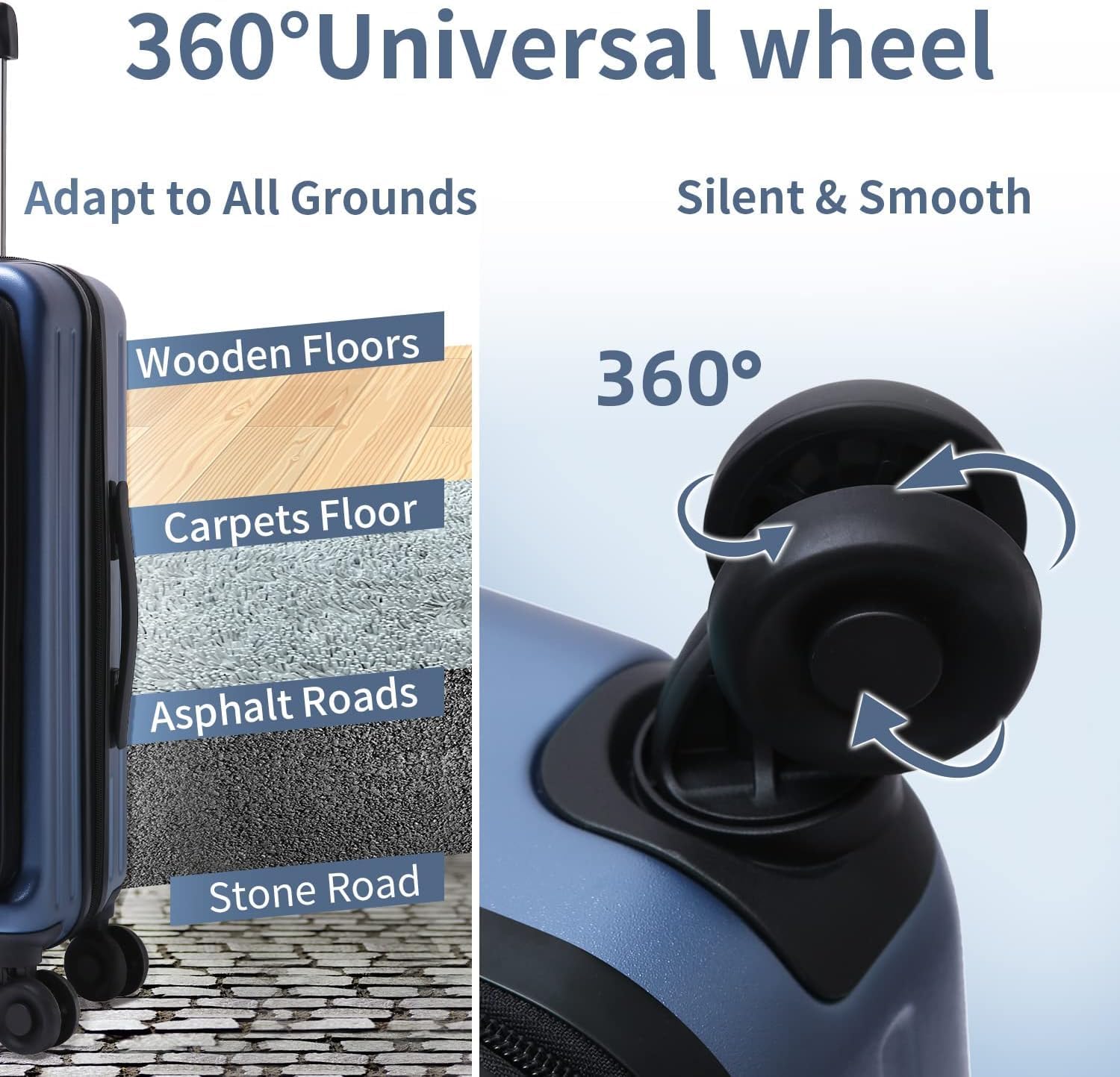 - ABS + PC Material & Universalschweifrad um 360 °: leichte und widerstandsfähigere ABS + PC-Materialien, dreischichtige Kompressionsstrukturplatten, starke Verstärkung und empfindlicher elektronischer Körnungsprozess sind komplexer und glänzender.