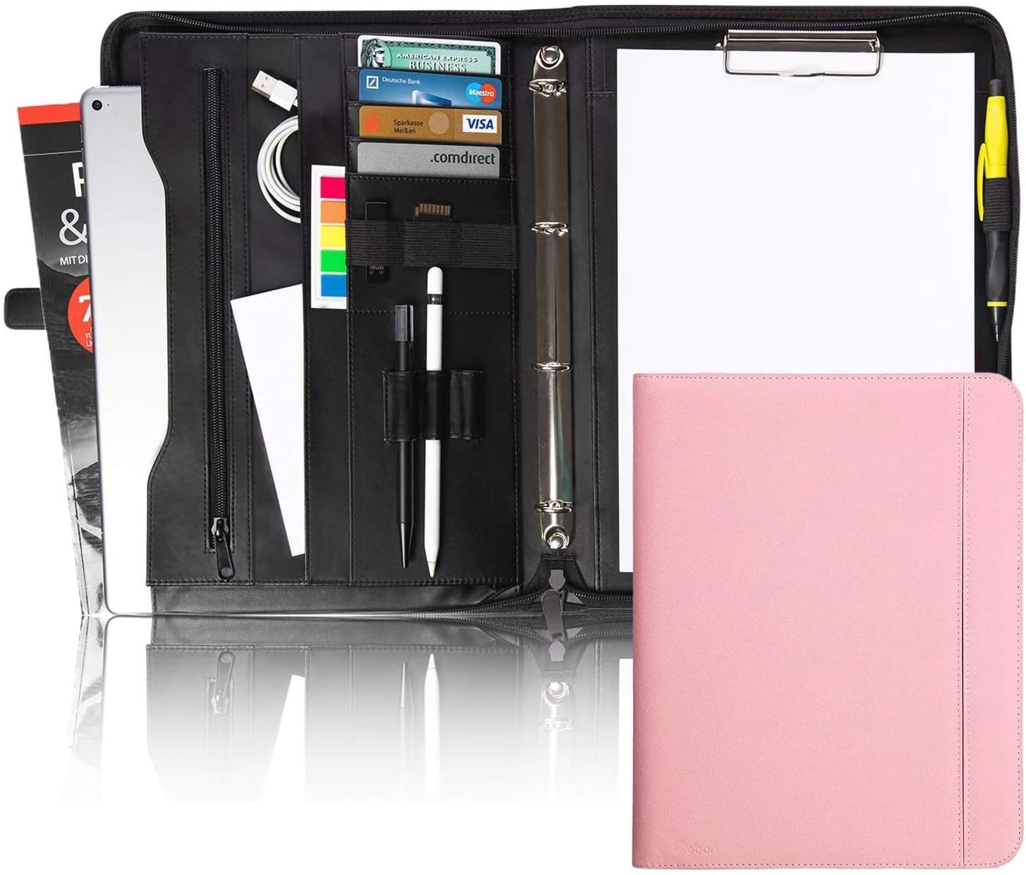 - MEHR PLATZ FÜR DICH – Im inneren der Klemmbrettmappe findest du zahlreiche Fächer und Halterungen für deine Utensilien vor. Zusätzlich bietet dir das grosszügige geteilte Innenfach die Möglichkeit deinen 13 Zoll Laptop und Tablet sicher