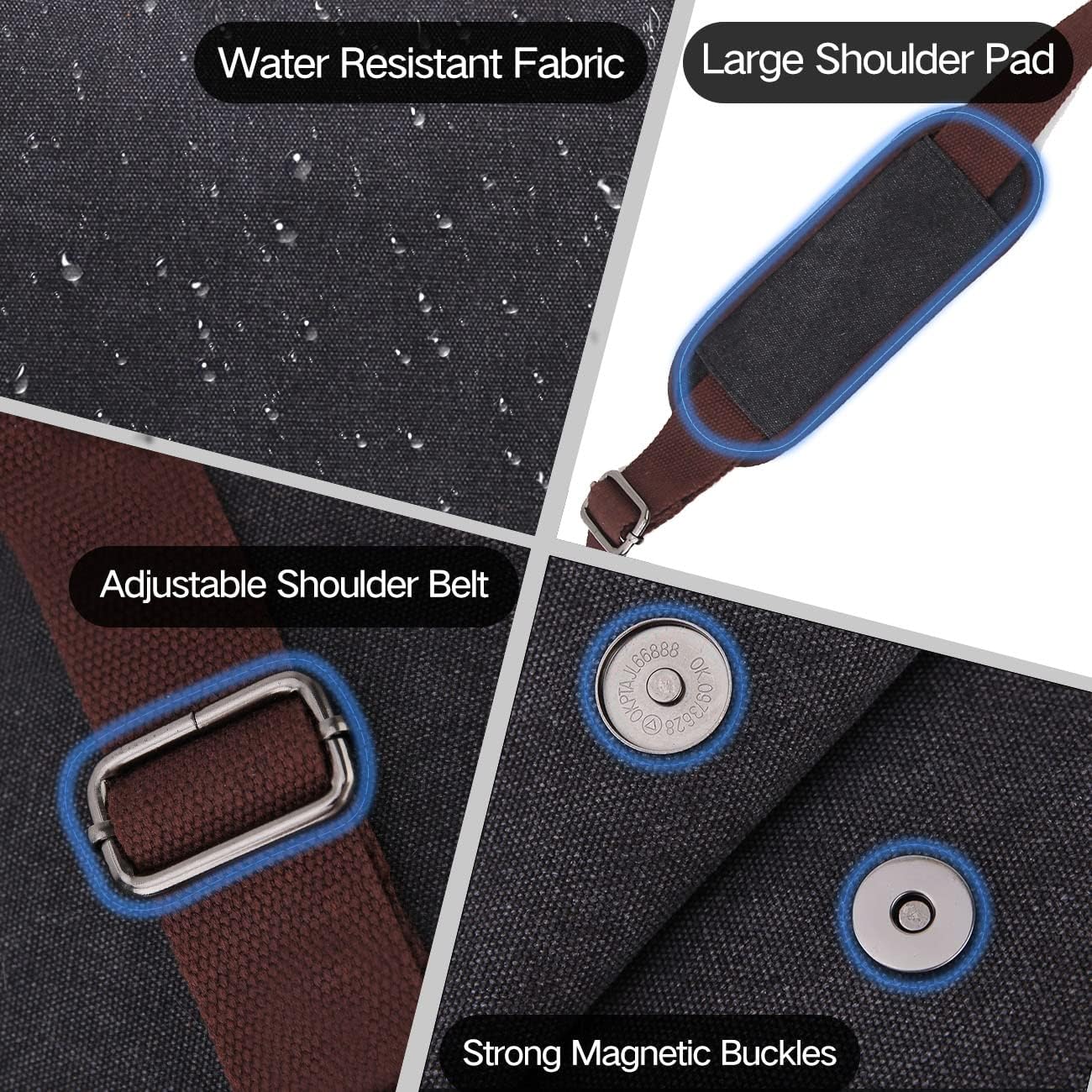 - Langlebig und sicher: Die Messenger-Tasche aus Segeltuch ist aus robustem Segeltuch und echtem Retro-Rindsleder, um die Haltbarkeit zu gewährleisten. Es wird durch praktische Magnetknöpfe und Reissverschluss für Sicherheit geschlossen.