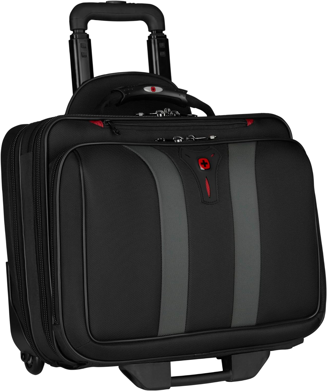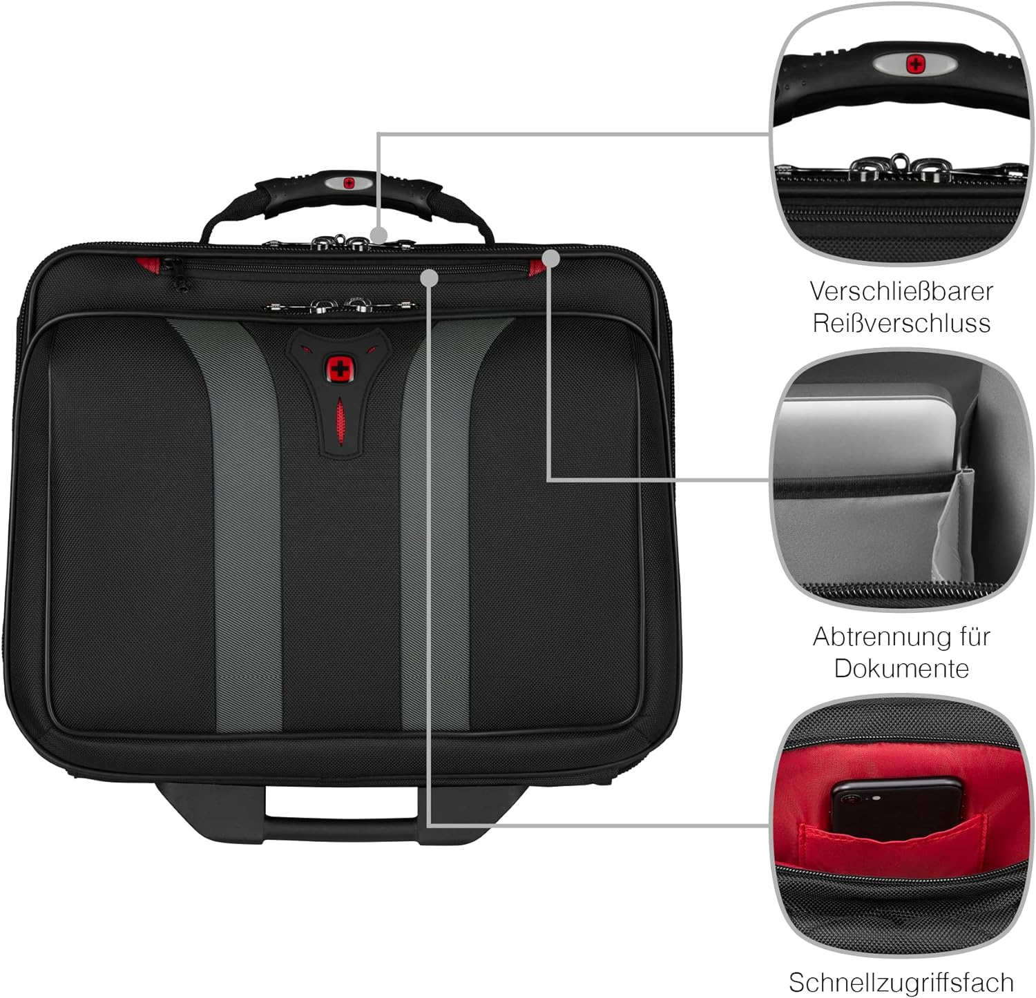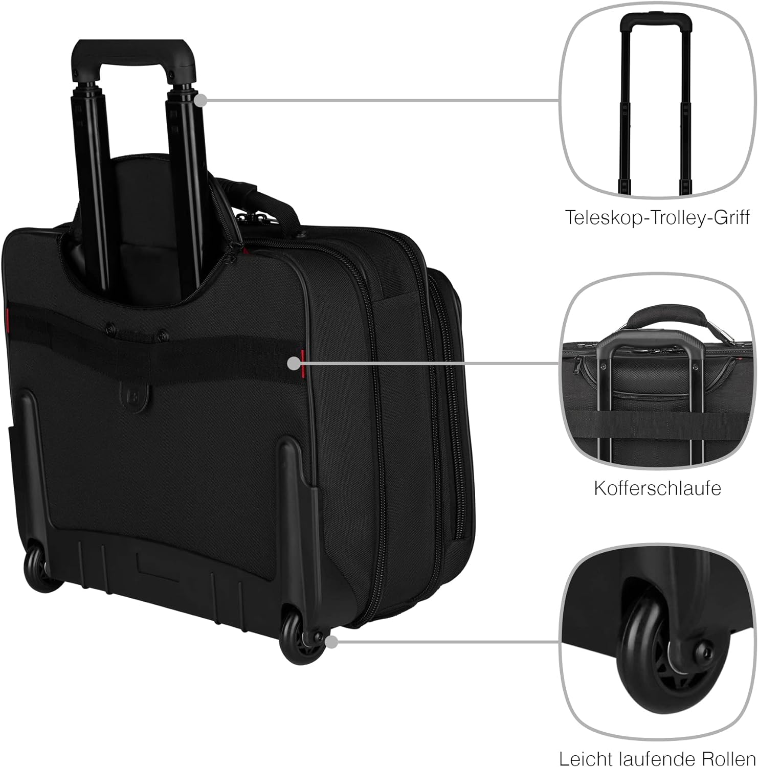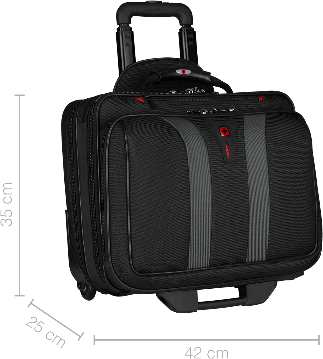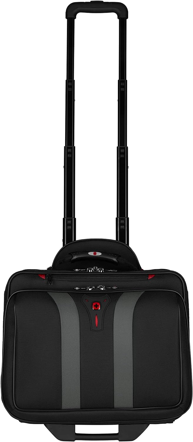 - LIEFERUMFANG UND ABMESSUNGEN: Wenger Laptoptasche mit Rollen, Abmessungen: 25 x 42 x 35 cm, Stauraum: 24 l, Gewicht: 3,9 kg, Modell: Granada, Farbe: Schwarz, Artikelnummer: 600659