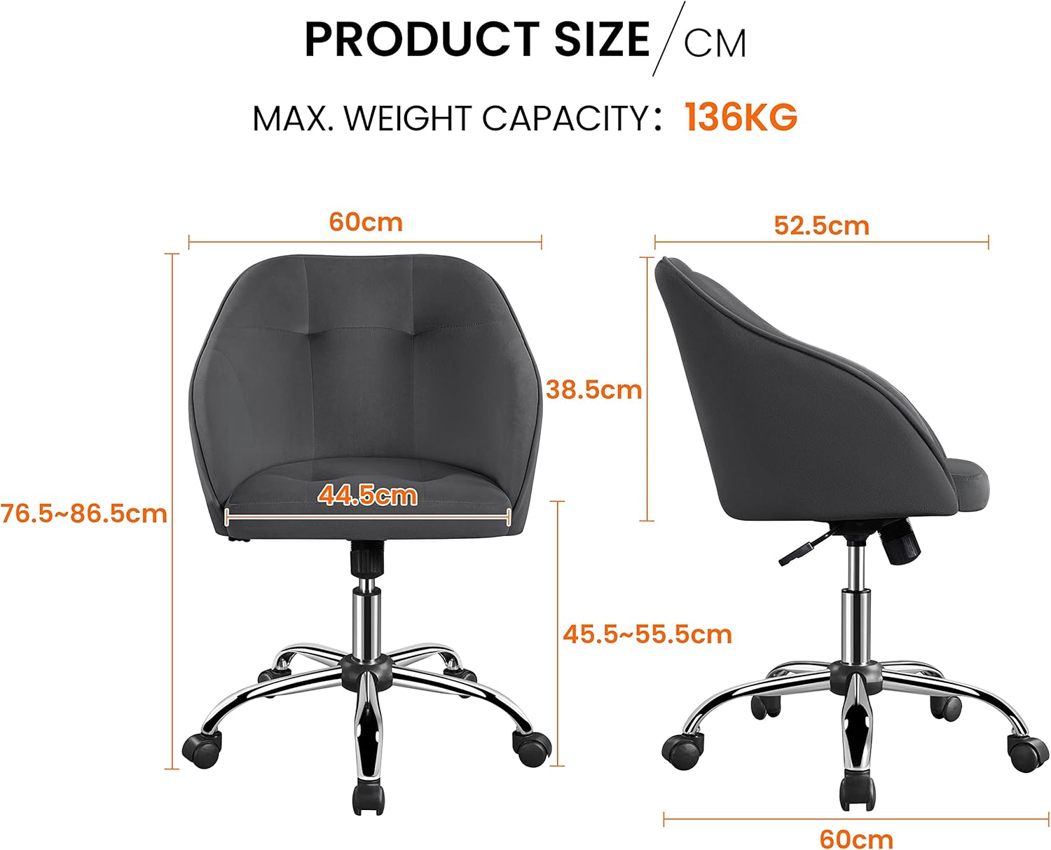 • Modernes Design: Dank dem modernen Design und dem ästhetisch ansprechenden Aussehen kann der Bürostuhl Ihnen nicht nur ein bequemes Sitzerlebnis bieten, sondern auch Ihre Wohnung oder Büro ideal dekorieren. Die Textur des Samtes verleiht zudem Ihrem Wohn-/Arbeitsraum extra modische Charme.